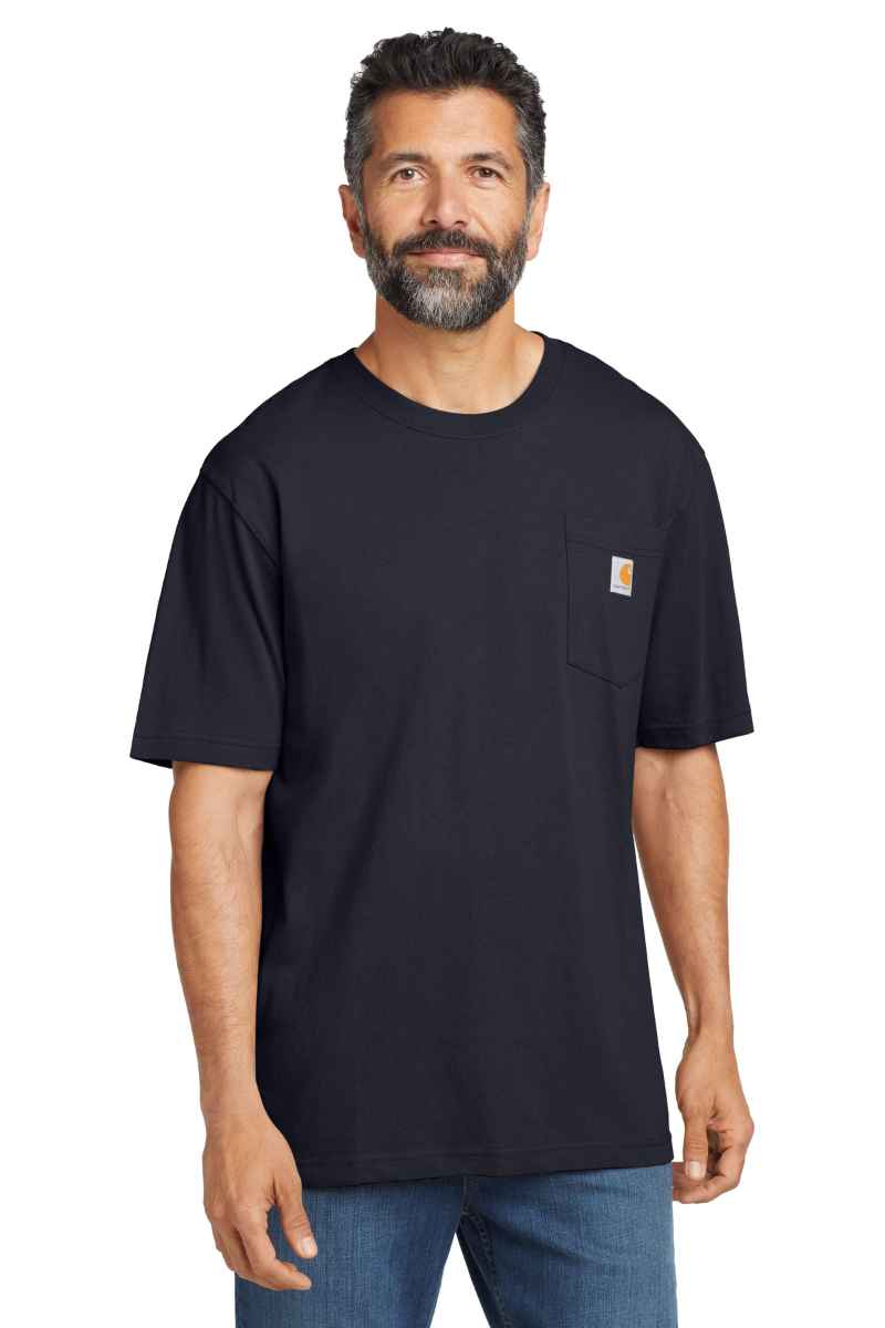 Carhartt's bestselling, no-quit, original work shirt. A classic for 25 years. Durable 6.75-ounce, 100% cotton jersey knit 90/10 cotton/poly (Heather Grey) 60/40 cotton/poly (Other Heathers, Brite Lime, Brite Orange) Rib knit crewneck Tagless neck label Left chest pocket Side-seamed construction minimizes twisting Carhartt label sewn on left chest pocket Loose fit
