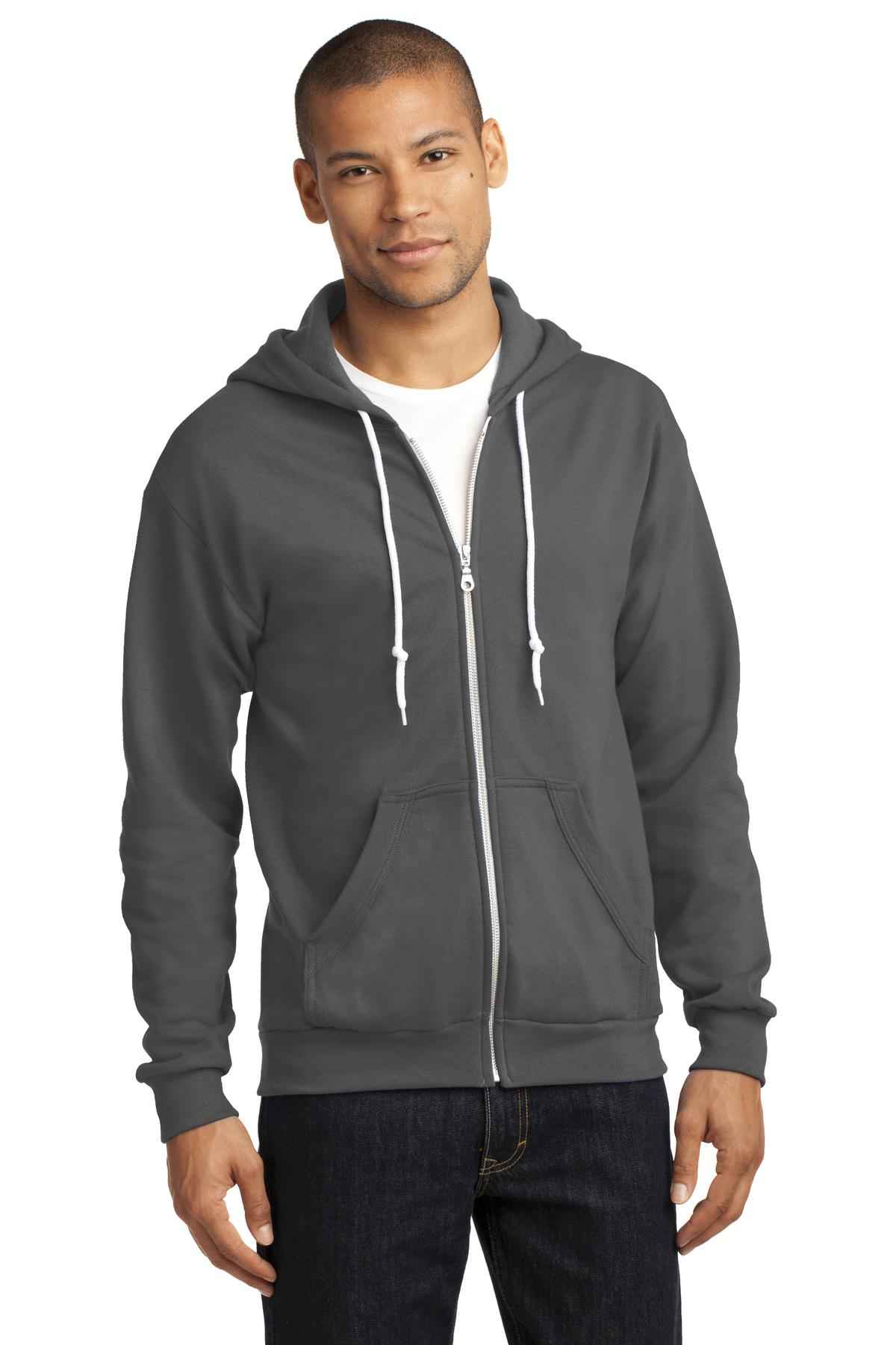 7.2-ounce, 75/25 ring spun combed cotton/polyester fleece 1/4' contrast white neck taping Back patch Unlined hood with white drawcord 2-inch rolled forward shoulders Double-needle topstitching at neck Contrast white metallic zipper 1x1 rib cuffs and waistband with spandex Front pouch pockets Tubular construction Woven label Oeko-Tex ® Standard 100 Certified Classic fit Heather Grey is 70/30 cotton poly Please note: This product is transitioning from Anvil labels to Anvil by Gildan labels. Your order may contain a combination of both labels.