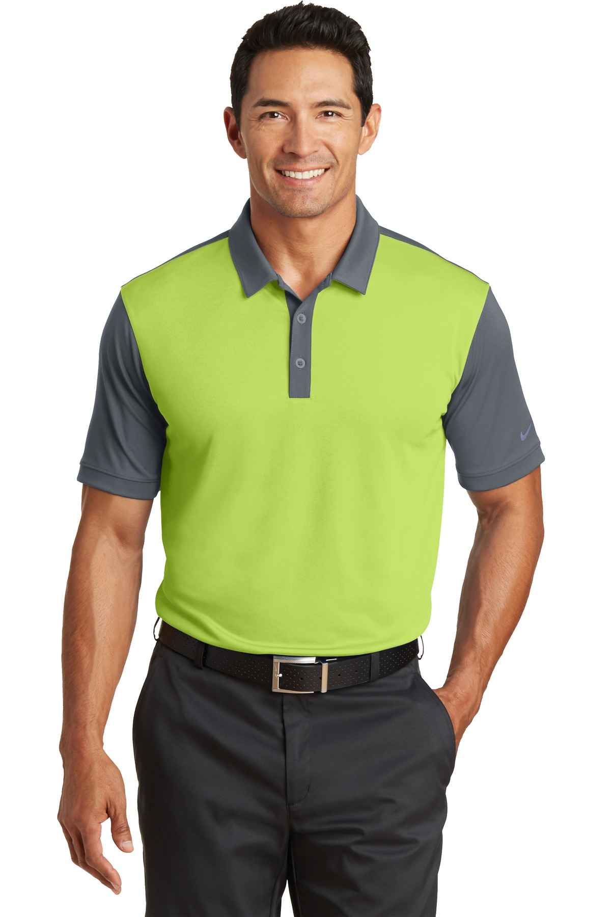 Inspired by styles worn by top Nike Golf athletes, this polo has a bold contrast collar and sleeves for immediate impact. Dri-FIT moisture management technology ensures cooler, drier performance. Design details include a self-fabric collar, contrast three-button placket with dyed-to-match buttons and open hem sleeves. A metallic silver Swoosh design trademark is on the left sleeve. Made of 5.2-ounce, 100% polyester Dri-FIT fabric. Modern fit is slightly tailored through the chest, arms and waist.