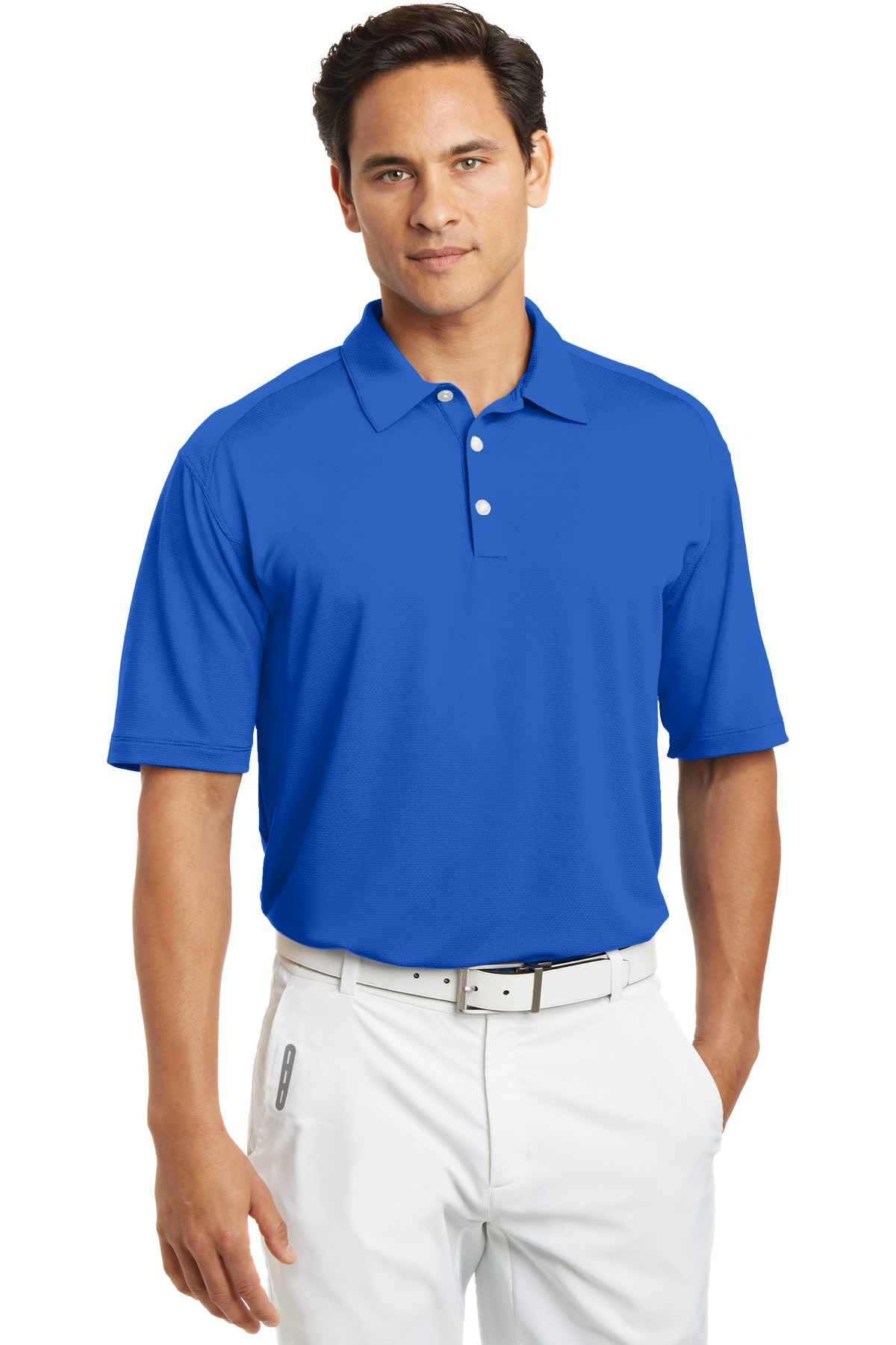 Work (or play) your best in this lightweight polo built with Dri-FIT moisture management technology. An intricate chain-link texture gives subtle character while panels on the shoulders and under the arms add more visual interest. With double-needle stitching throughout, the design features a self-fabric collar, three-button placket, embossed Swoosh design trademark buttons, open hem sleeves and side vents. Pearlized buttons are selected to complement the shirt color. The contrast Swoosh design trademark is embroidered on the left sleeve. Made of 4.1-ounce, 100% polyester.