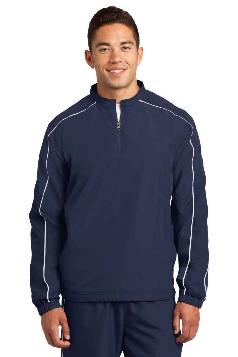 Colorblocking and piping give this water-repellent wind shirt athletic appeal. The 1/4-zip with cadet collar adds versatility and up-to-date style. | 100% polyester 100% polyester mesh lining Half-elastic, half self-fabric cuffs for comfort Left side seam zipper for easy on/off Side pockets Drawcord hem with toggle