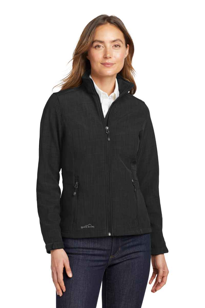 Gear up for the office or a weekend adventure in this soft shell that offers water protection and breathability thanks to its 5K/5K fabric. 5000MM fabric water protection rating. 5000G/M2 fabric breathability rating. Reverse coil zippers, front zippered pockets, adjustable tab cuffs with hook and loop closures and an open hem. Princess seams and embroidered Eddie Bauer contrast logo on right hem. Made of a 100% polyester woven shell bonded to a water-resistant laminated film insert and a 100% polyester fleece.