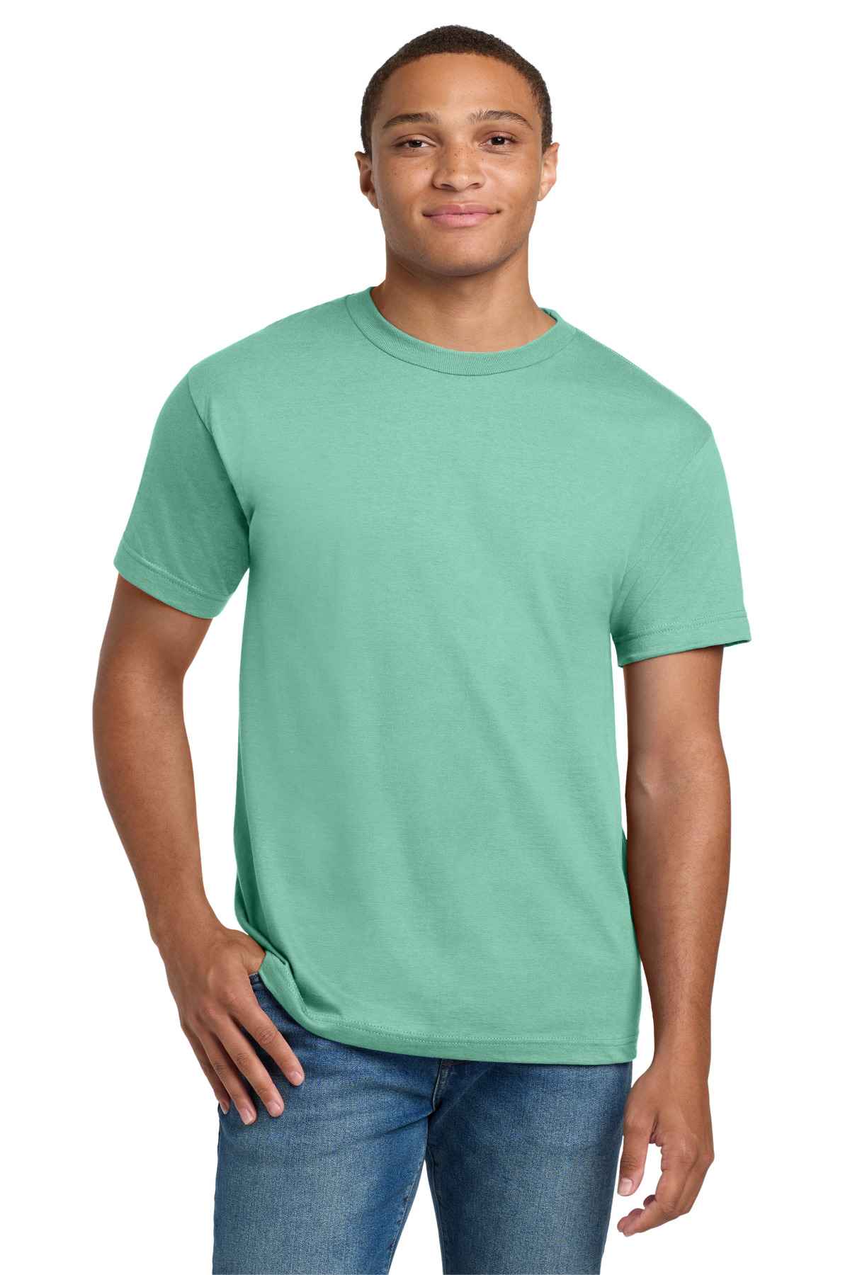| 6.1-ounce, 100% US-grown ring spun cotton 99/1 cotton/poly (Ash) 90/10 cotton/poly (Light Steel) 60/40 cotton/poly (Heathers, Oxford Grey) Tear-away label Set-in 1x1 rib crewneck Lay-flat collar Shoulder-to-shoulder taping Relaxed fit Please note: This product is transitioning from tag-free labels to tear-away labels. Your order may contain a combination of both labels.