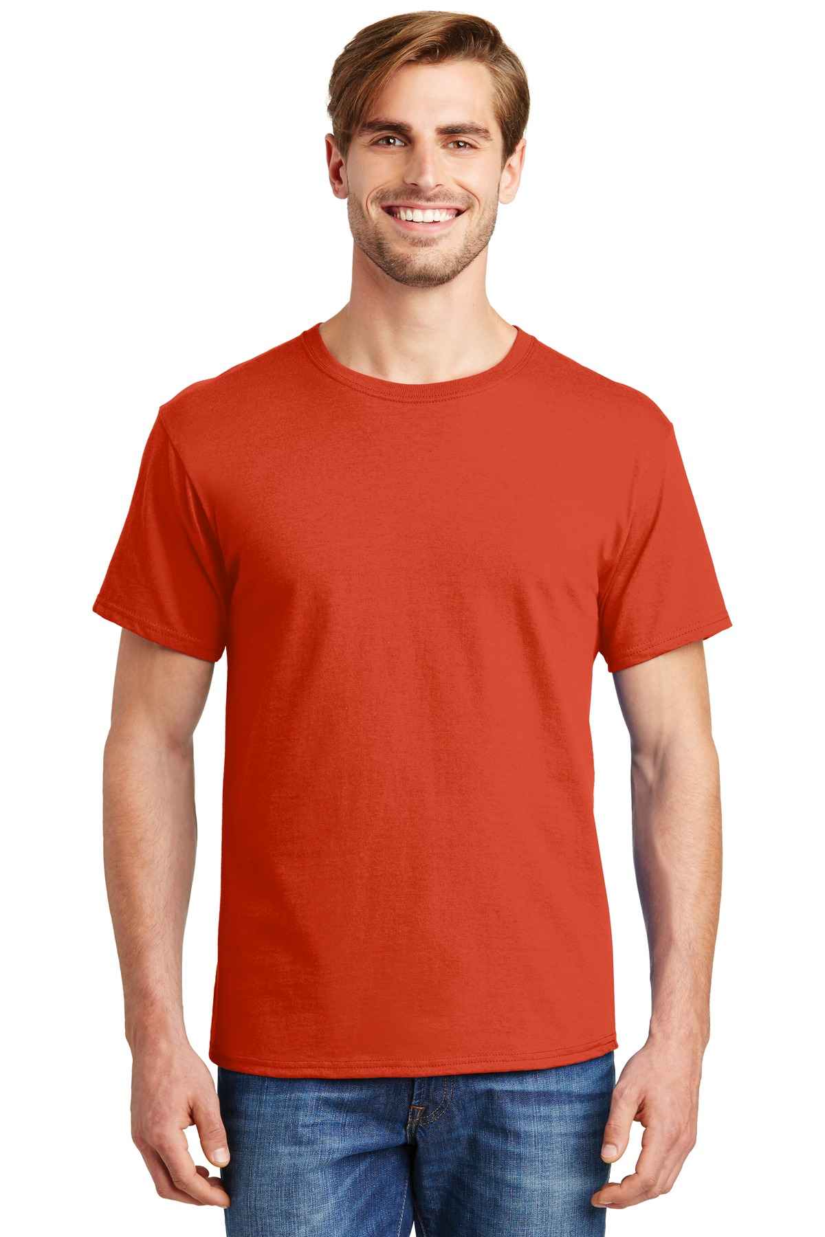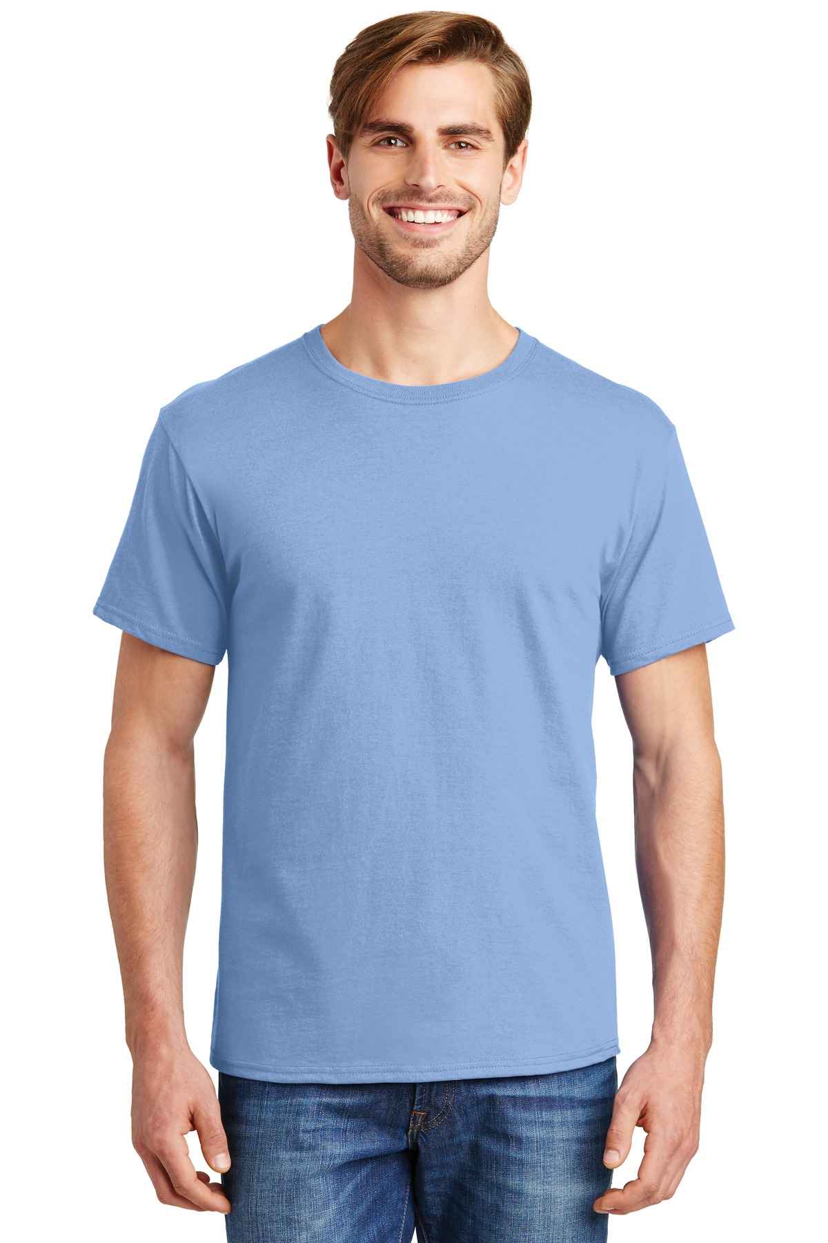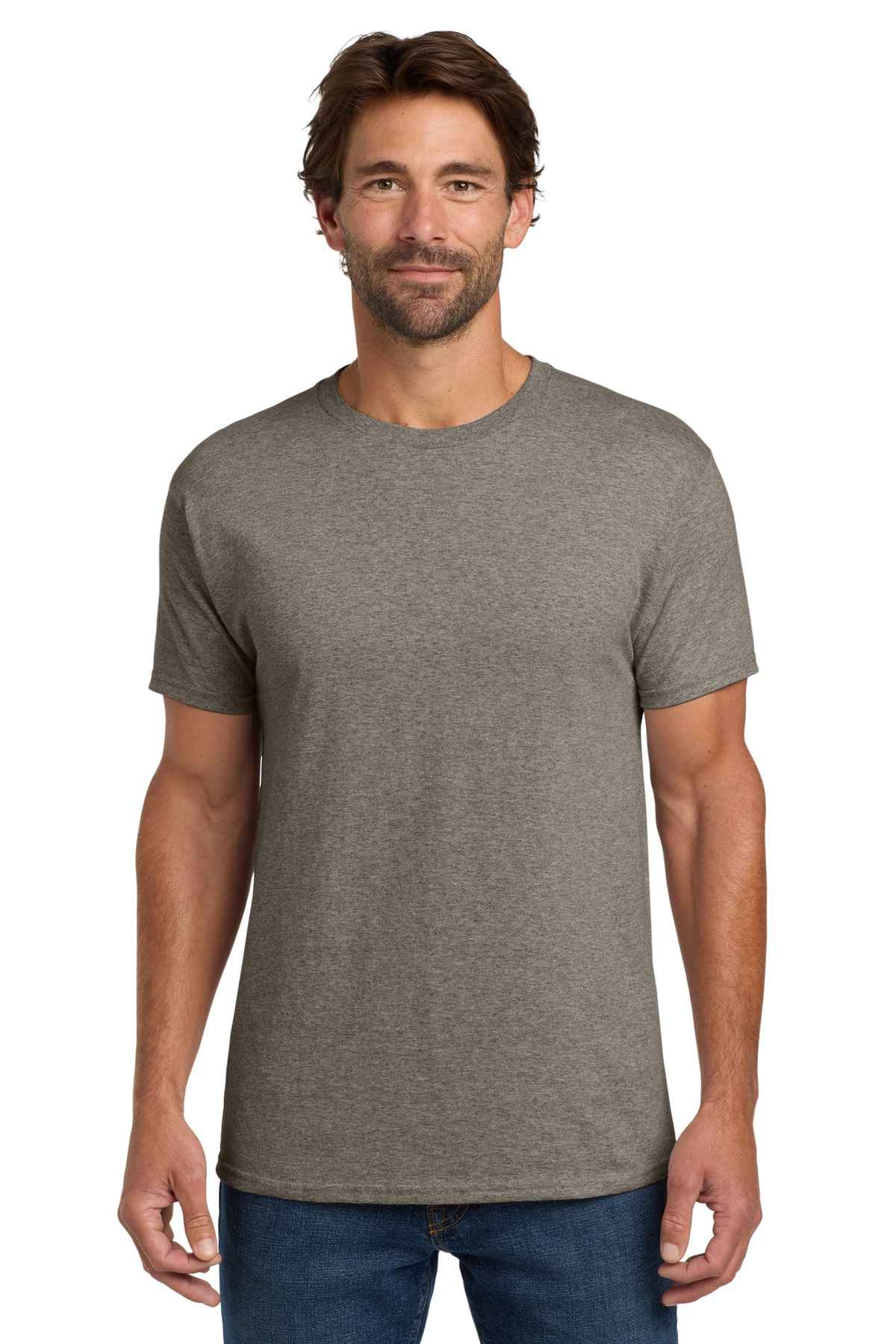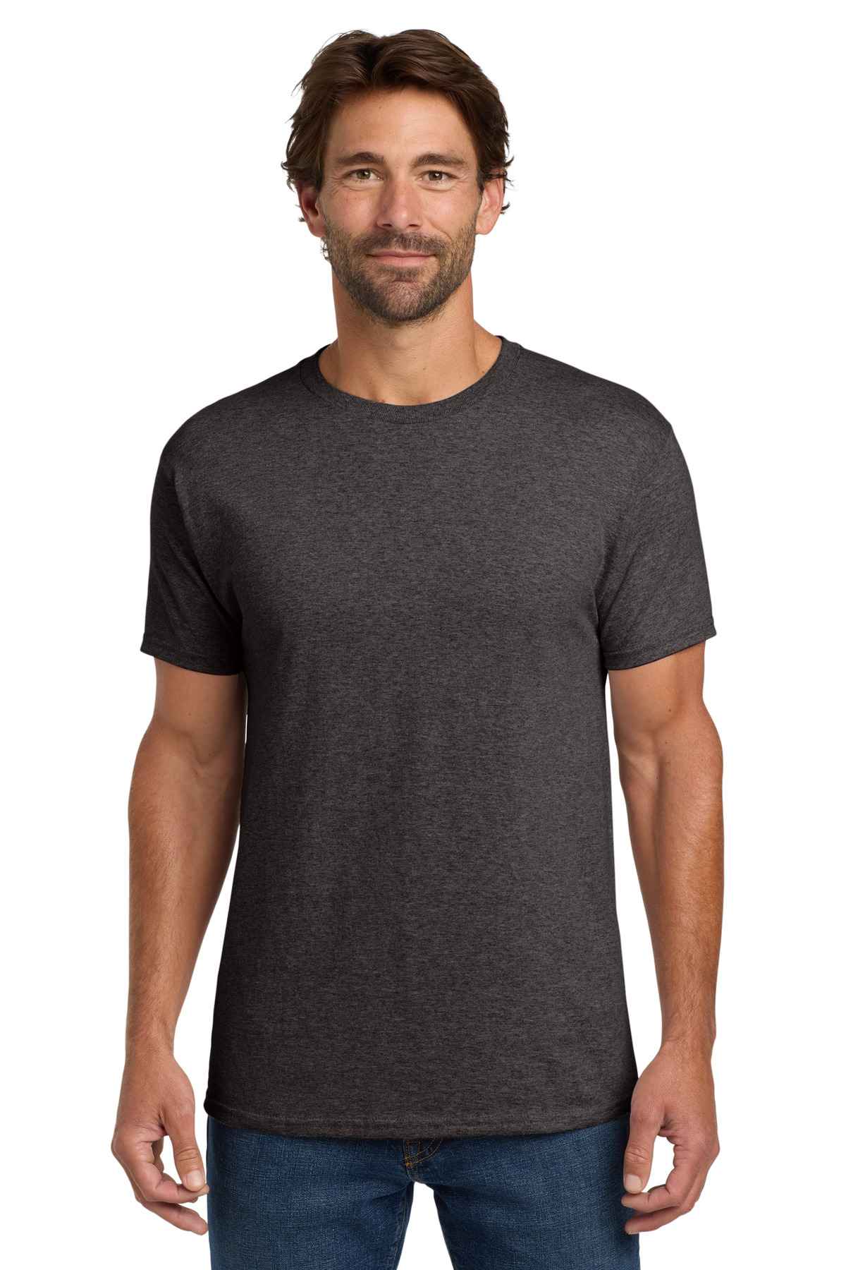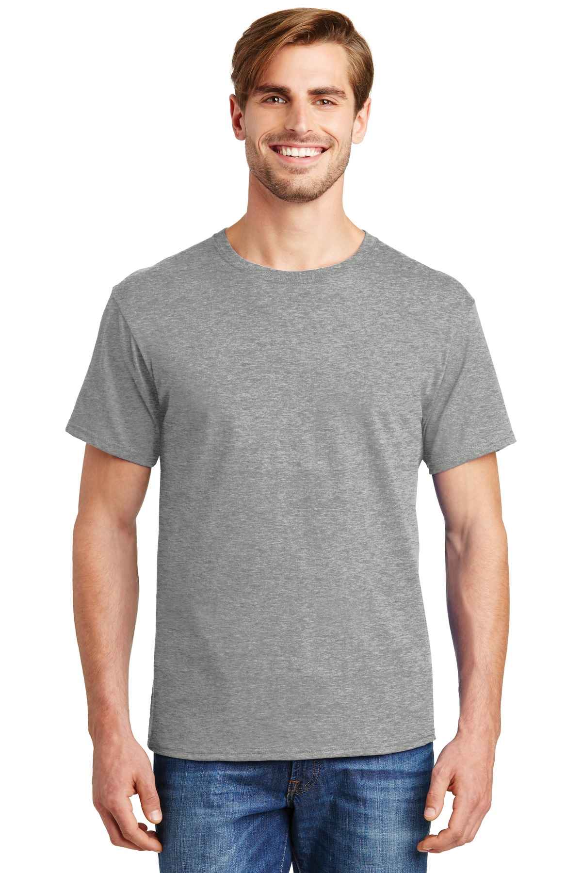 | 5.2-ounce, 100% US-grown cotton 99/1 cotton/poly (Ash) 90/10 cotton/poly (Light Steel) 60/40 cotton/poly (Charcoal Heather, Oxford Grey, Safety Green, Safety Orange) Tear-away label Set-in 1x1 rib crewneck Self-fabric neck tape for comfort Quarter-turned body Classic fit Please note: This product is transitioning from tag-free labels to tearaway labels. Your order may contain a combination of both.