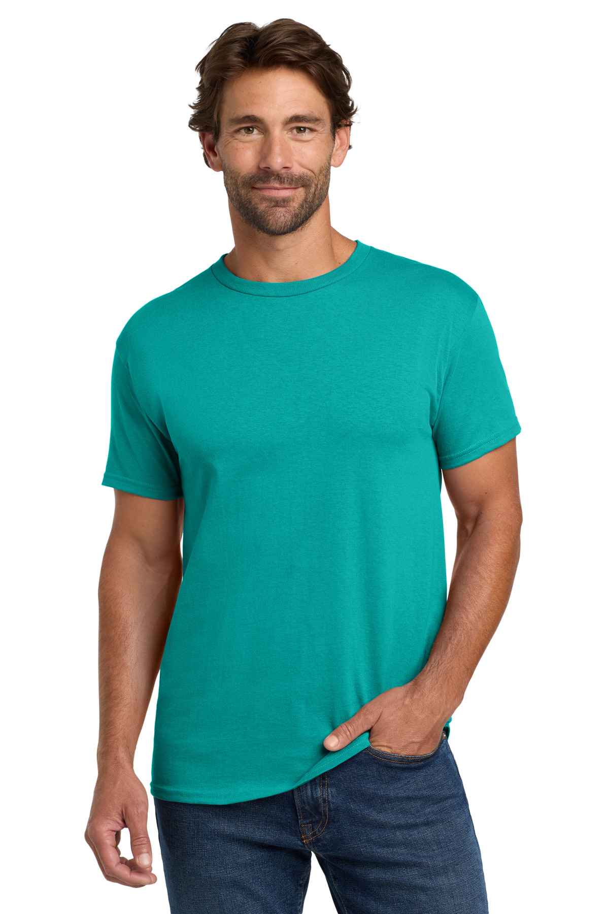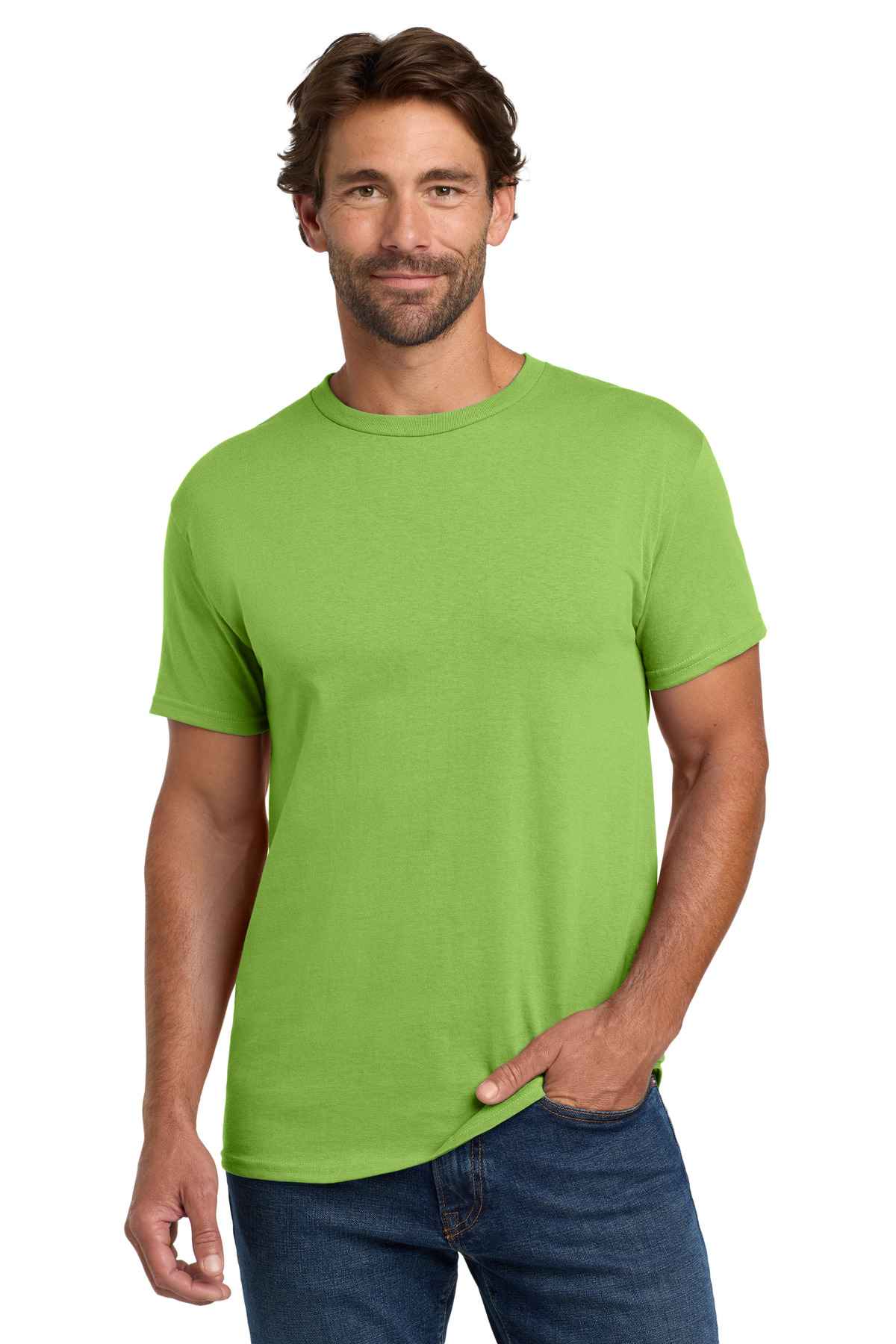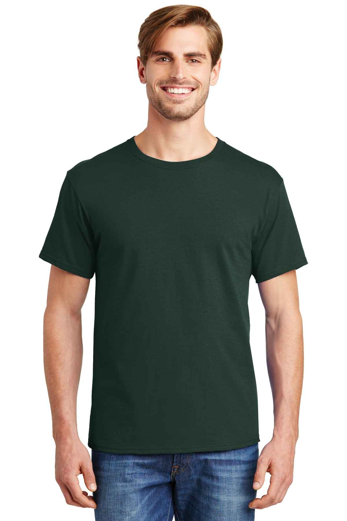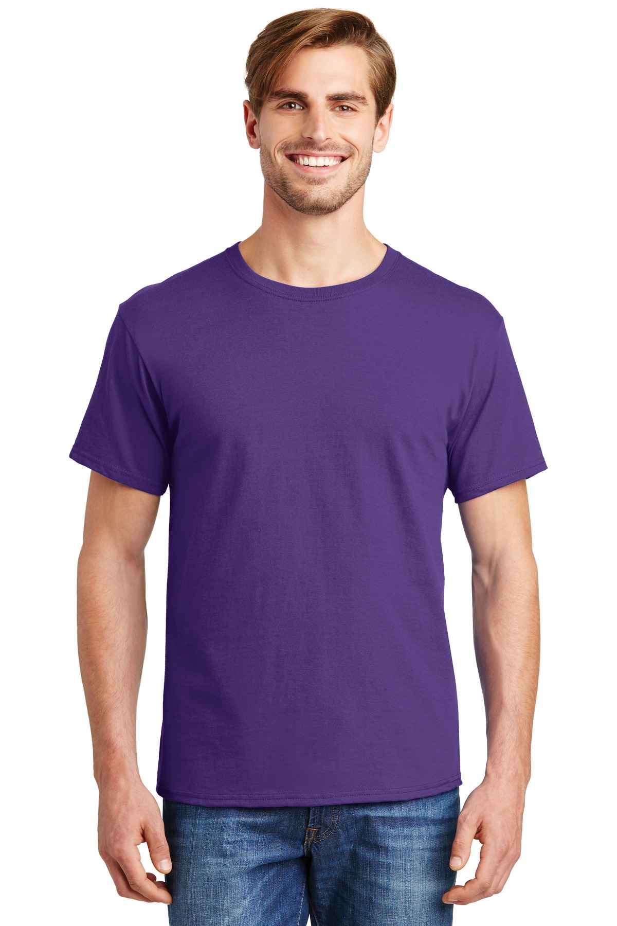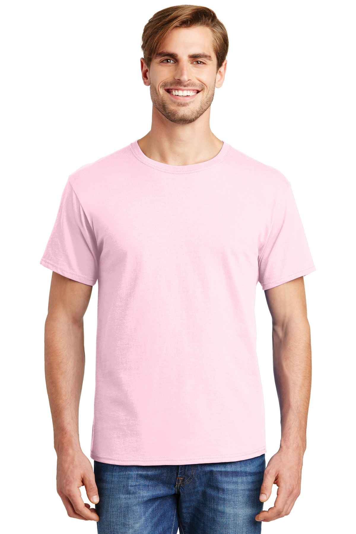 | 5.2-ounce, 100% US-grown cotton 99/1 cotton/poly (Ash) 90/10 cotton/poly (Light Steel) 60/40 cotton/poly (Charcoal Heather, Oxford Grey, Safety Green, Safety Orange) Tear-away label Set-in 1x1 rib crewneck Self-fabric neck tape for comfort Quarter-turned body Classic fit Please note: This product is transitioning from tag-free labels to tearaway labels. Your order may contain a combination of both.