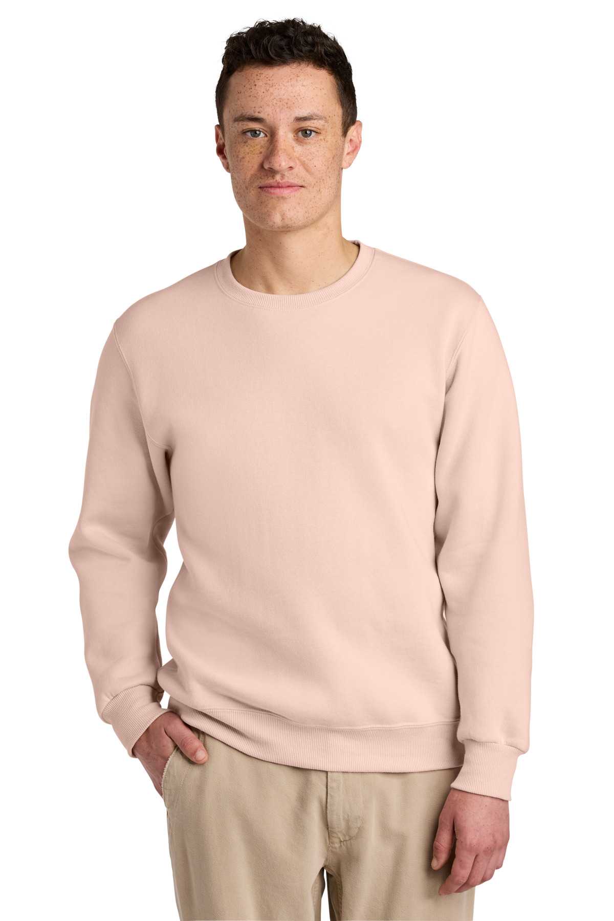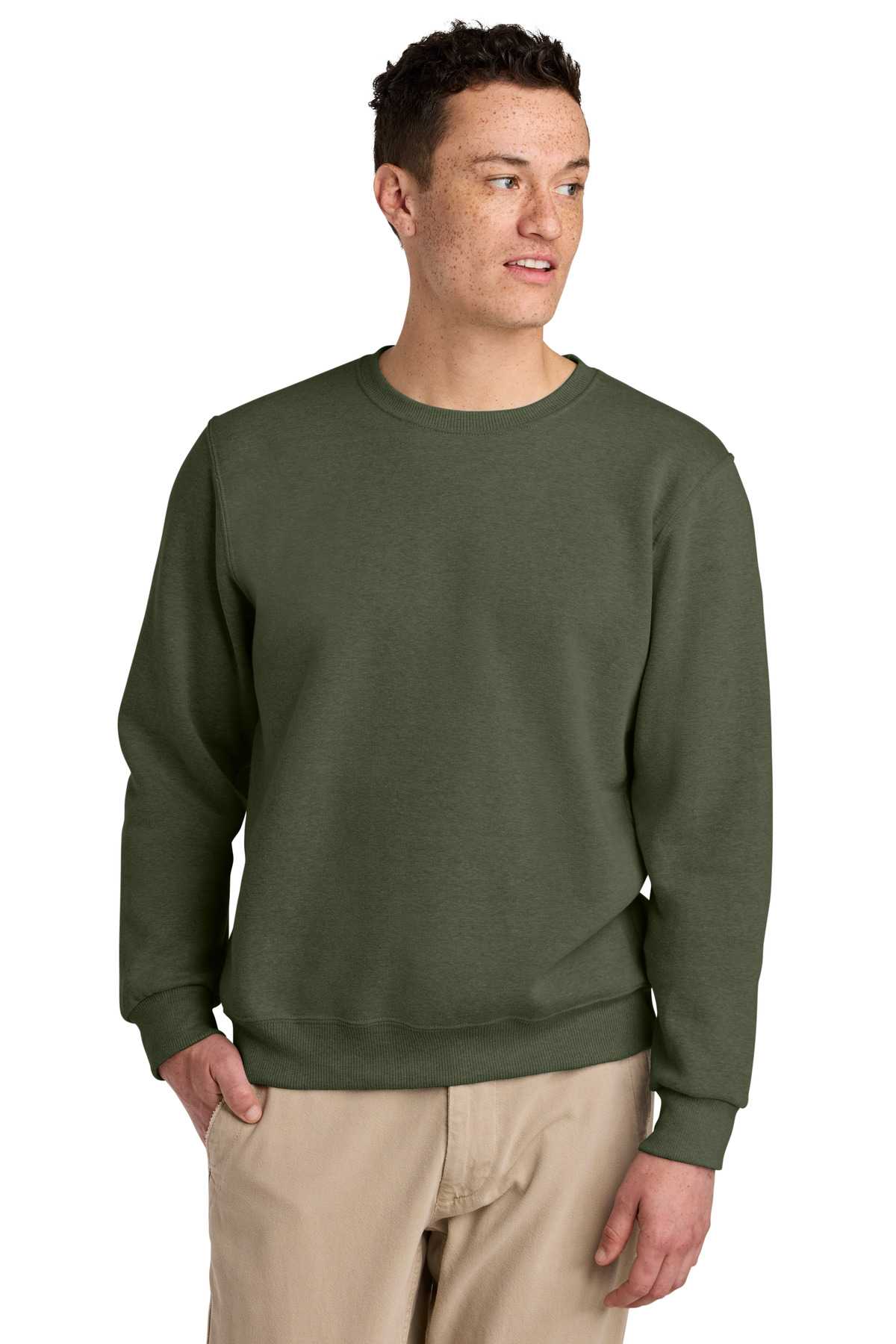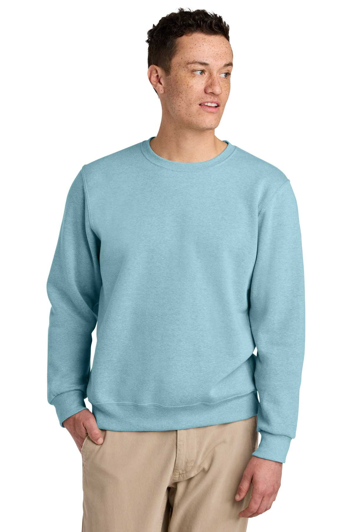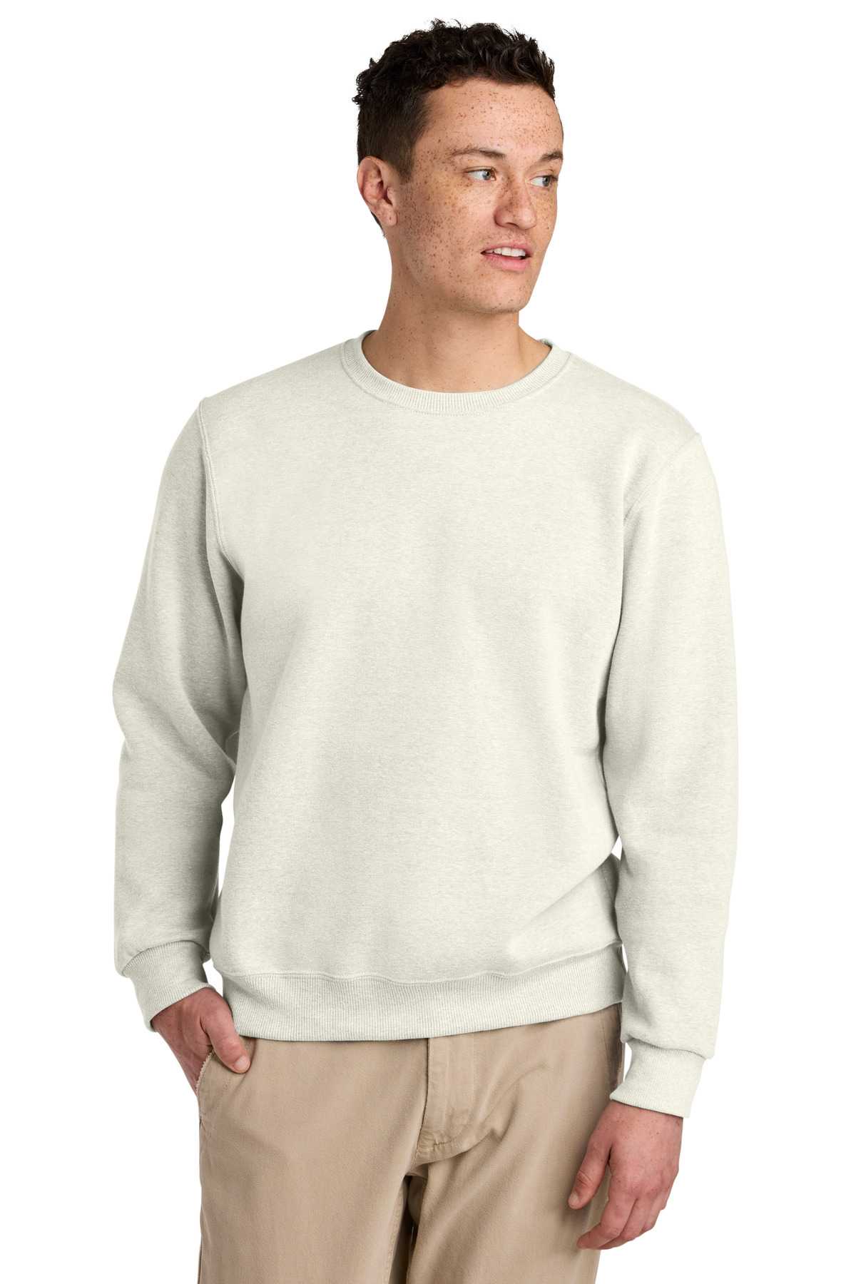 8.5-ounce, 57/43 combed ring spun cotton/recycled poly fleece Made with 100% recycled polyester and sustainably-sourced USA-grown cotton Made of stronger 3-end fleece Moisture-wicking Shoulder to shoulder taping 2x2 rib cuffs and waistband Tear-away label