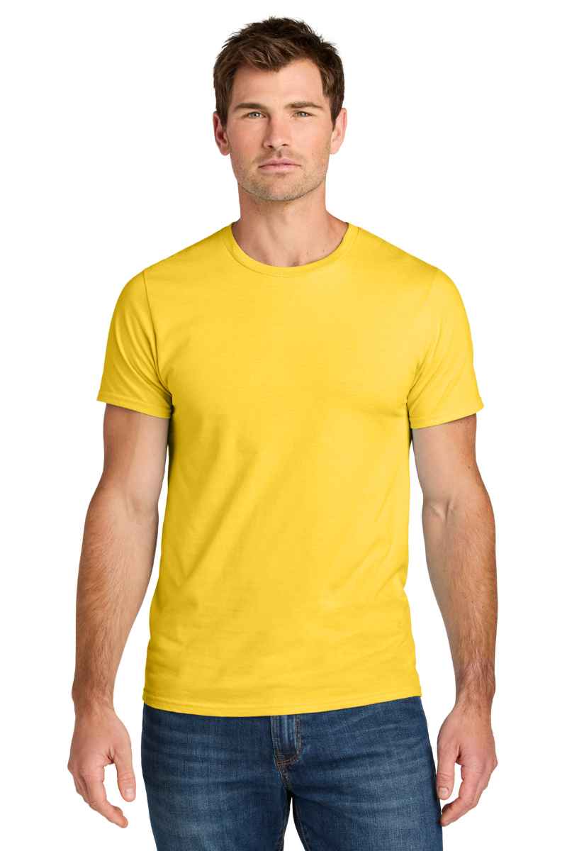 4.6-ounce, 100% ring spun cotton 60/40 CVC cotton/polyester (Heathers) 90/10 CVC cotton/polyester (Athletic Heather, Peppered Red Heather) Seamless 1x1 rib knit collar with clean neckline Shoulder to shoulder taping Double-needle sleeves and hem Classic fit Tear-away label