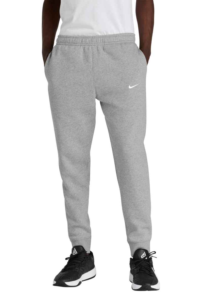 Whether you're running laps or running errands, this Nike jogger combines warmth, style and performance. 8.2-ounce, 80/20 cotton/polyester Interior dyed-to-match drawstrings at waist Two front pockets One back pocket with snap button Ribbed cuffs Embroidered Swoosh logo on left leg **