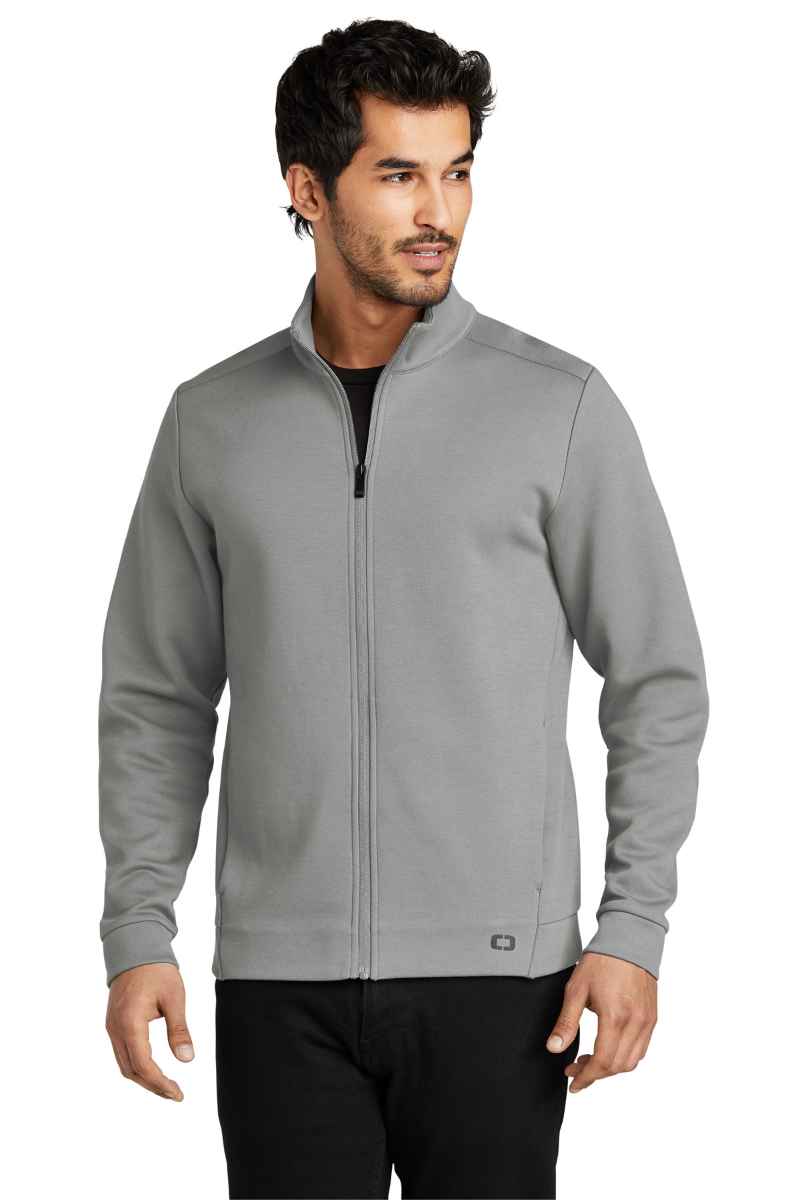 Clean design lines and a matte appearance give this double-knit full-zip a minimalist look with understated OGIO edge. 8.9-ounce, 77/23 cotton/poly Zip-through collar OGIO heat transfer label for tag-free comfort Reverse coil zipper with black metal pull with debossed O Forward shoulders Articulated elbows Slash pockets Black reflective O heat transfer on front left hem