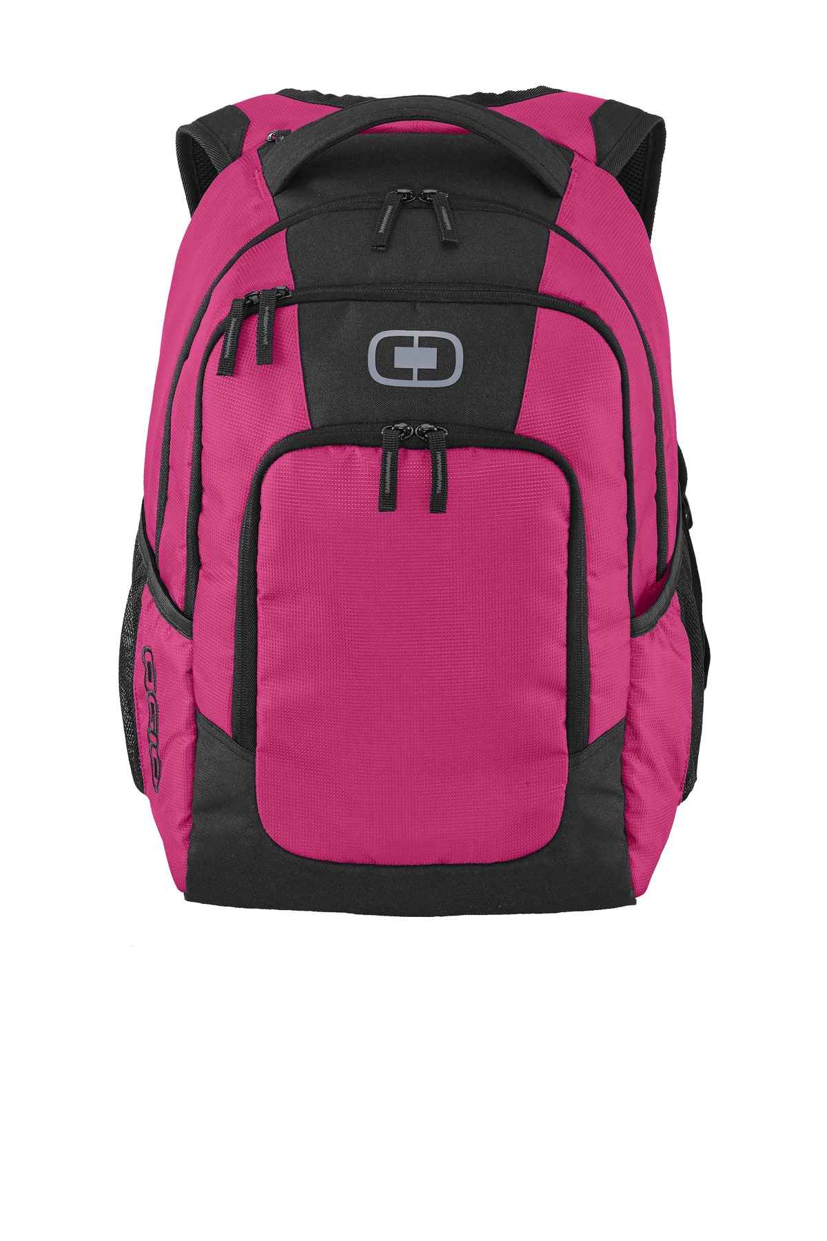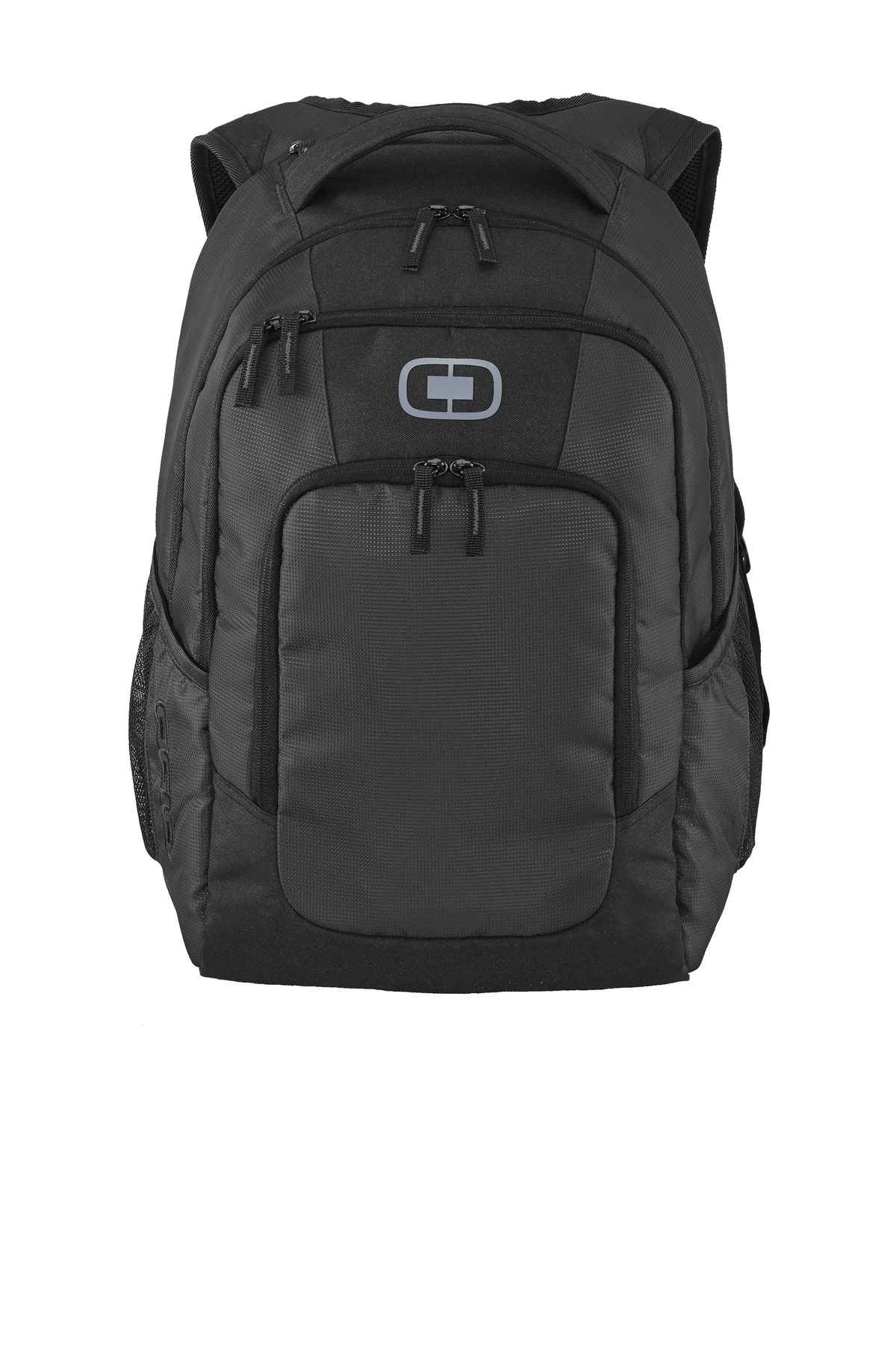 This pack makes a bold statement while protecting all your techie toys.| 840D poly dobby with PU backing Spacious main compartment Large secondary compartment Interior padded laptop compartment Interior padded tablet sleeve Front compartment with deluxe organization panel, zippered pocket and key fob Ergonomic padded shoulder straps Padded back panel with moisture-wicking air mesh Dual side mesh water bottle/accessory holders OGIO embroidered zipper pulls Laptop sleeve: 15'h x 12'w x 1.5'd; fits most 15' laptops Dimensions: 18'h x 12.75'w x 9'd Capacity: 1,700 cu.in./27.9 L Weight: 1.3 lbs./0.59 kg Bags not intended for use by children 12 and under.