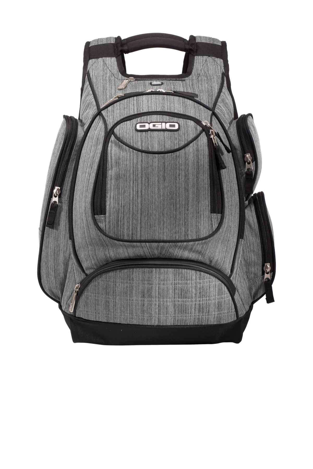 Stocked with options, this impressive bag organizes gadgetry and belongings for quick access.| 420D dobby poly/600D poly 600D poly/900D Sketcher poly (Noise) Back panel side-entry padded laptop pocket Large center storage area Power cord and mouse storage Internal file sleeve Weatherproof fleece-lined digital media/audio pockets with headphone exit port Adjustable sternum strap Deluxe organization panel Laptop sleeve: 15.5'h x 11.5'w x 2'd; fits most 17' laptops Dimensions: 18'h x 13.5'w x 9'd Capacity: 2,187 cu.in./35.8 L Weight: 2.4 lbs./1.1 kg Note: Bags not intended for use by children 12 and under. Includes a California Prop 65 and social responsibility hangtag.