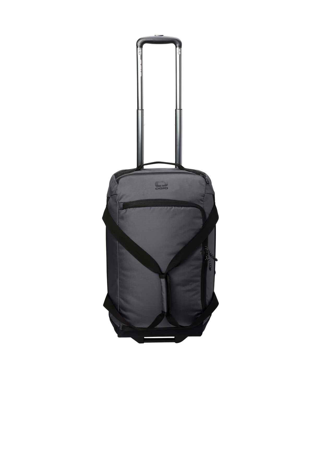 Two-tone 200D ripstop/1000D poly matte ballistic/1000D poly ballistic compression molded shell Telescoping handle with OGIO logo Top zippered valuables pocket Compression molded back and bottom panels with debossed O Interior zippered mesh pocket Interior compression straps Two rugged in-line luggage wheels Padded top and side grab handles OGIO logo zipper pulls OGIO logo telescoping luggage trolley High-density O screen print Luggage feet handle Dimensions: 22.75'h x 13'w x 10'd Capacity: 2,135 cu. in./35 L Weight: 5.75 lbs./2.60 kg Carry-on size (check airline for specific carry-on dimensions) Note: Bags not intended for use by children 12 and under