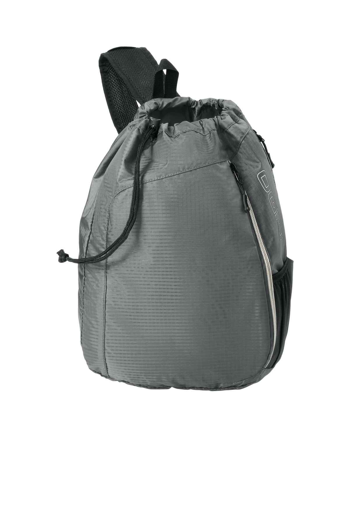 This innovative essential has an adjustable, padded sling shoulder strap for comfortable carrying across your body. | 420D poly double ripstop Drawstring top Front zippered pocket for easy decoration access Side beverage pocket Side zippered valuables pocket Stretch mesh phone pocket on shoulder strap Dimensions: 18.75'h x 12.25'w x 4.5'd Capacity: 1,200 cu.in./19.7 L Weight: 0.25 lbs./0.71 kg Note: Bags not intended for use by children 12 and under. Includes a California Prop 65 and social responsibility hangtag.