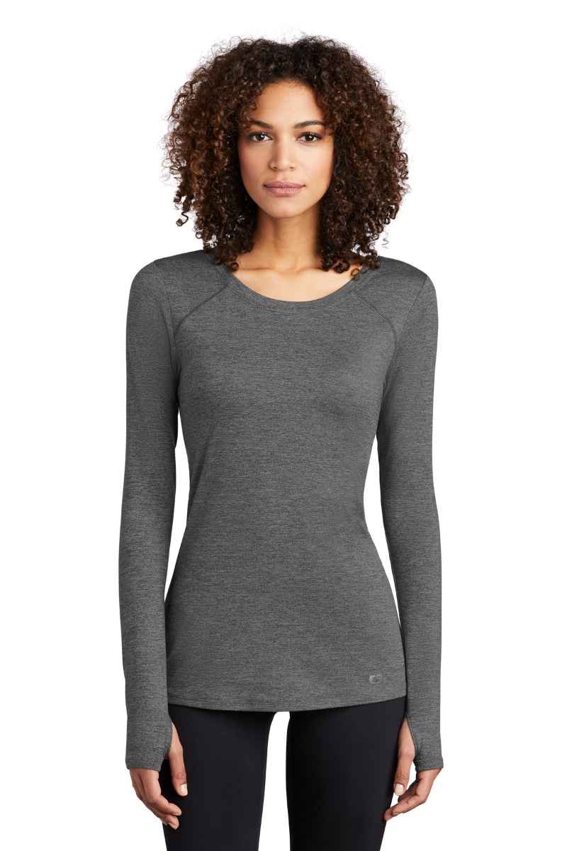 STAY-COOL WICKING STRETCH FLATLOCK SEAMS FOR COMFORT REFLECTIVE DETAILS 5.2-ounce, 88/12 poly/spandex with stay-cool wicking technology OGIO heat transfer label for tag-free comfort Cutout back with strap Thumbholes for warmth Black reflective O heat transfer on front left hem