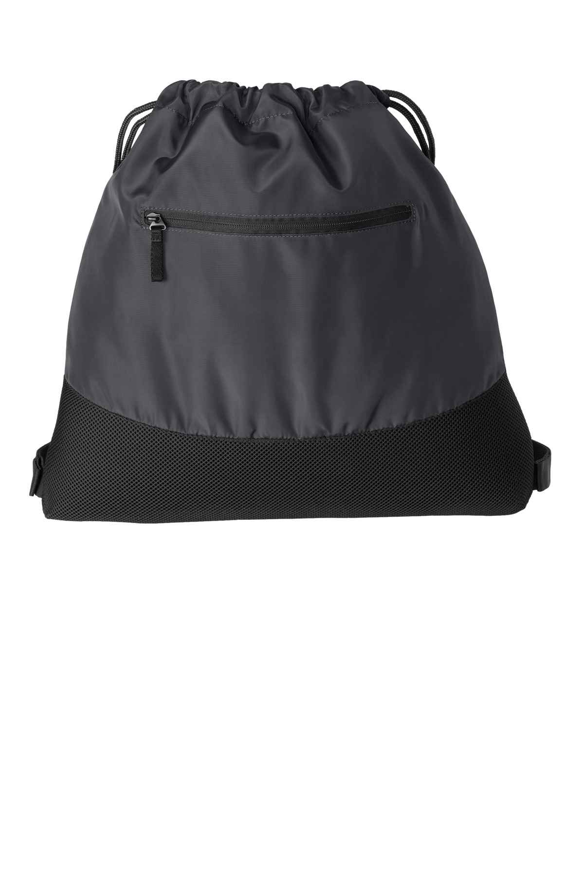 140D x 140D polyester body Black polyester air mesh base Web top handle Drawcord closure Adjustable web straps Front zippered pocket Black trim Dimensions: 17.75'h x 17.75'w x 1.96'd Capacity: 1,190 cu. in./19.5 L Weight: 0.53 lbs./0.23 kg Note: Bags not intended for use by children 12 and under.