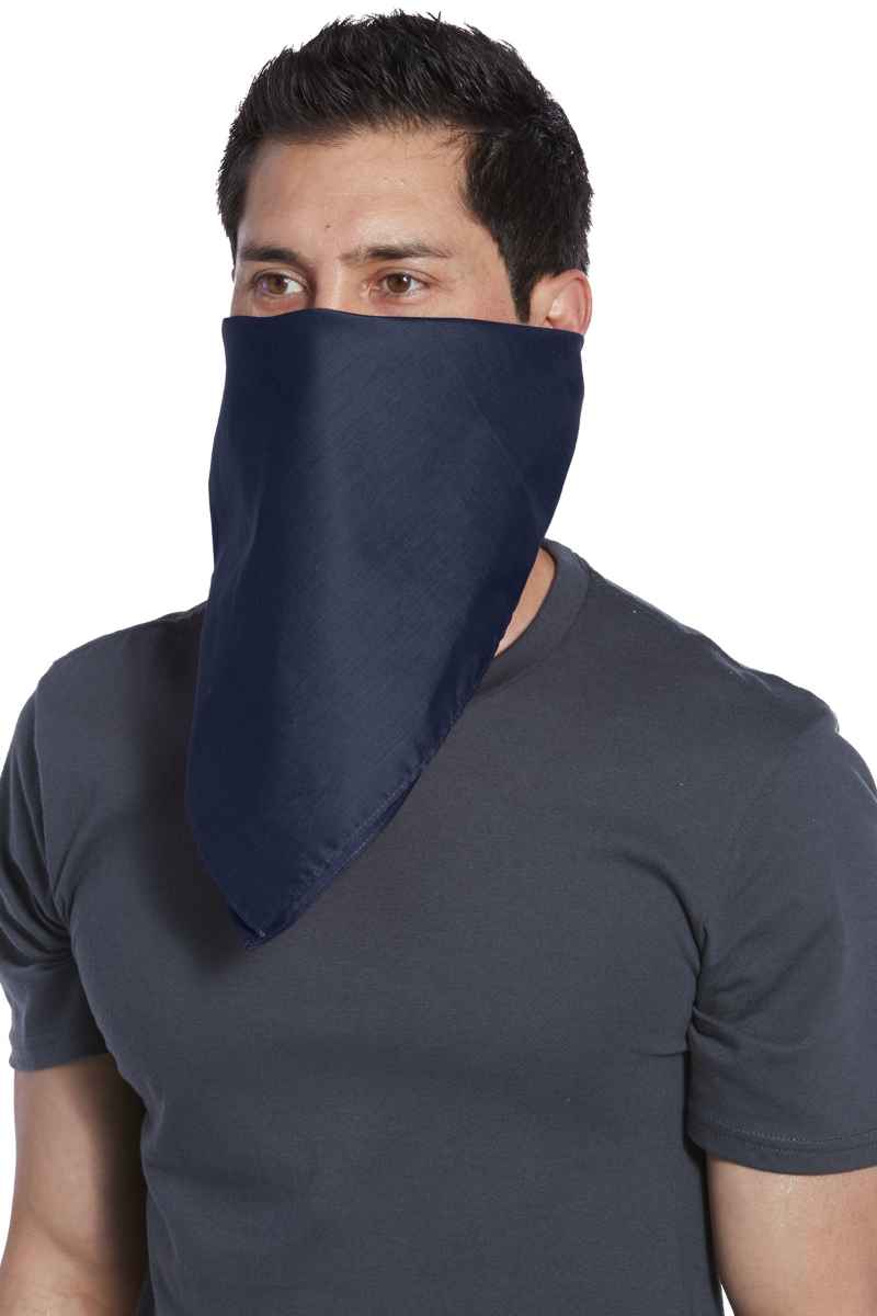 This bandana serves as a multifunctional, versatile face covering as well as a headband and neckerchief. Fold bandana diagonally and tie around head to cover face as desired. 100% cotton Finished seams prevent fraying Measures: 21.5' x 21.5' Machine washable Non-medical use only