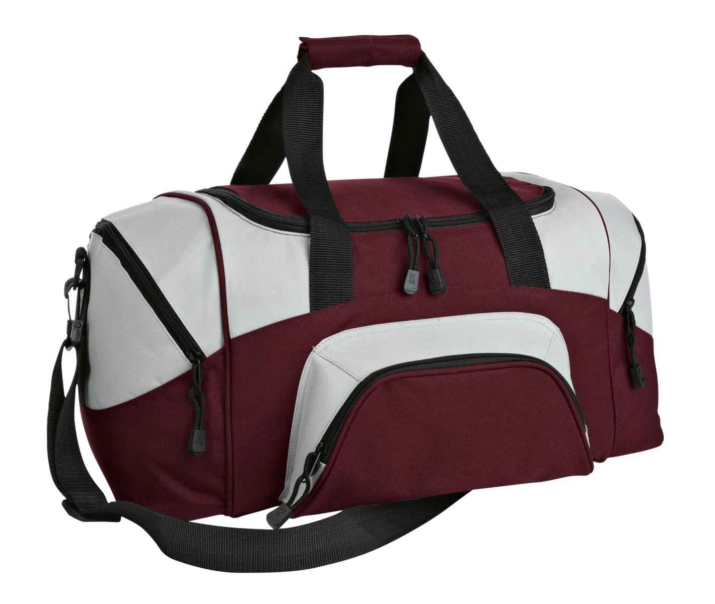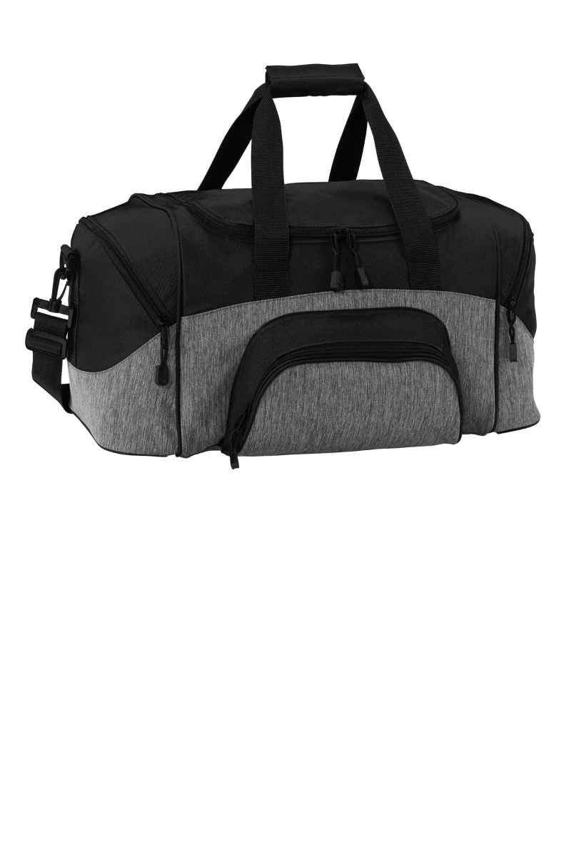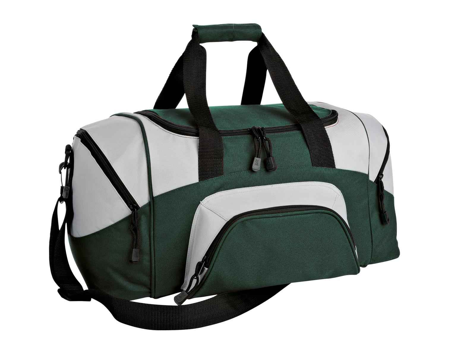 A smaller version of our best-selling, budget-friendly duffelthe BG99. | 600 denier polyester canvas with 210 denier polyester lining D-shaped zippered opening for easy access in main compartment Padded handle Detachable, adjustable shoulder strap Front zippered pocket Two large zippered end pockets Dimensions: 10'h x 20'w x 10.25'd; Approx. 2,050 cubic inches Note: Bags not intended for use by children 12 and under. Includes a California Prop 65 and social responsibility hangtag.