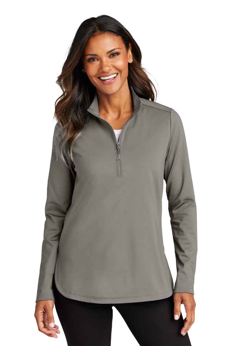 7.7-ounce, 89% recycled polyester/11% spandex interlock knit (solids) 7.7-ounce, 81% recycled polyester/8% polyester/11% spandex interlock knit (heathers) This product's carbon footprint has been measured and reduced through a combination of preferred materials and investing in carbon offset projects though the ClimeCo Certified Product Program Snag-resistant Moisture-wicking UPF rating of 50+ Self-piped zipper placket Forward shoulder Dyed-to-match, recycled, reverse coil zipper with silicone-tipped drawcord pull Self-turned cuffs Scalloped, drop tail hem Deep side vents Tag-free label