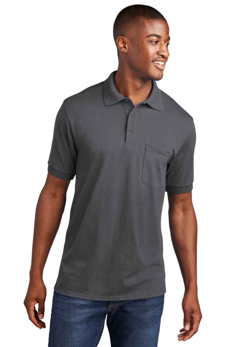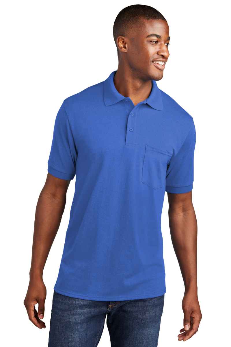 A left chest pocket, comfortable blend and stain-release finish make this budget-minded polo a strong choice for most uniforming needs. | 5.5-ounce, 50/50 cotton/poly Made with up to 5% polyester from plastic bottles Stain-release finish 1x1 rib knit collar and cuffs 3-button placket with dyed-to-match buttons Double-needle hem Due to the nature of 50/50 cotton/polyester neon fabrics, special care must be taken throughout the printing process.