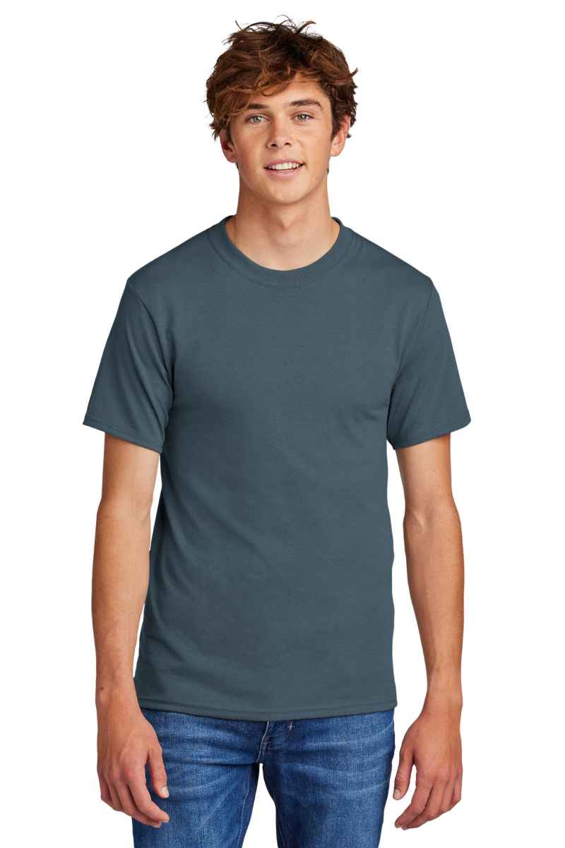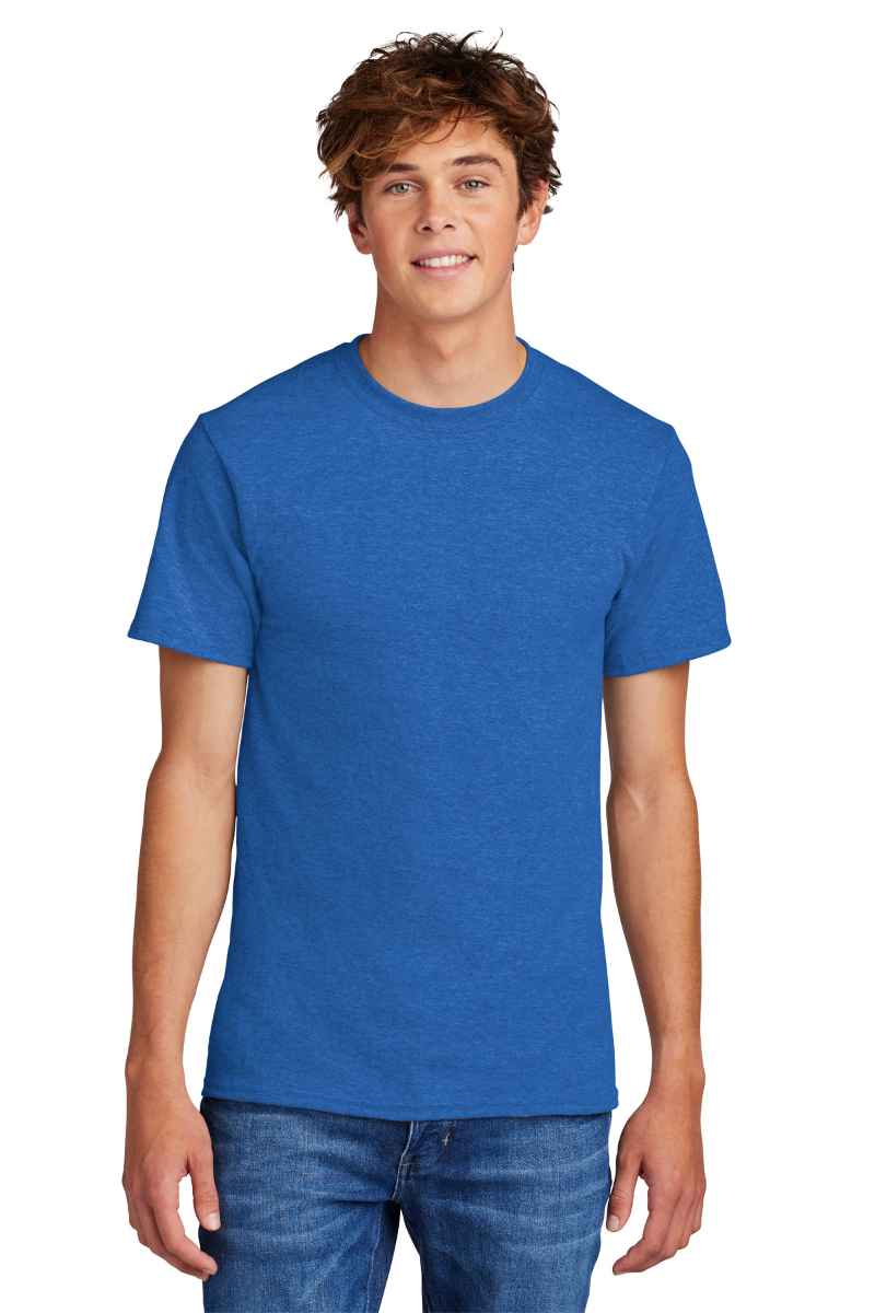 A reliable choice for comfort, softness and durability. 5.5-ounce, 50/50 cotton/poly Made with up to 5% recycled polyester from plastic bottles (Except Ash and Athletic Heather) 1x1 rib knit collar Shoulder to shoulder back neck tape Removable tag for comfort and relabeling Due to the nature of 50/50 cotton/polyester neon fabrics, special care must be taken throughout the printing process.