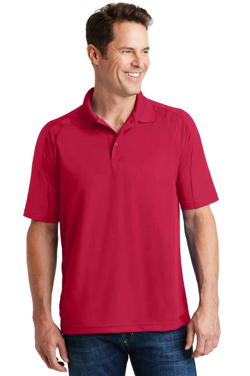 Zoned ventilation panels combine with our ultra-dry mesh moisture-wicking technology to create our coolest, most breathable polo. Stretch gussets add stretch and extra mobility. | 4-ounce, 100% polyester mini pique on body 4.4-ounce, 94/6 poly/spandex stretch mesh insets at raglan sleeves, side panels and locker patch Tag-free label Flat knit collar 3-button placket with dyed-to-match buttons * Due to the nature of 100% polyester performance fabrics, special care must be taken throughout the screen printing process.