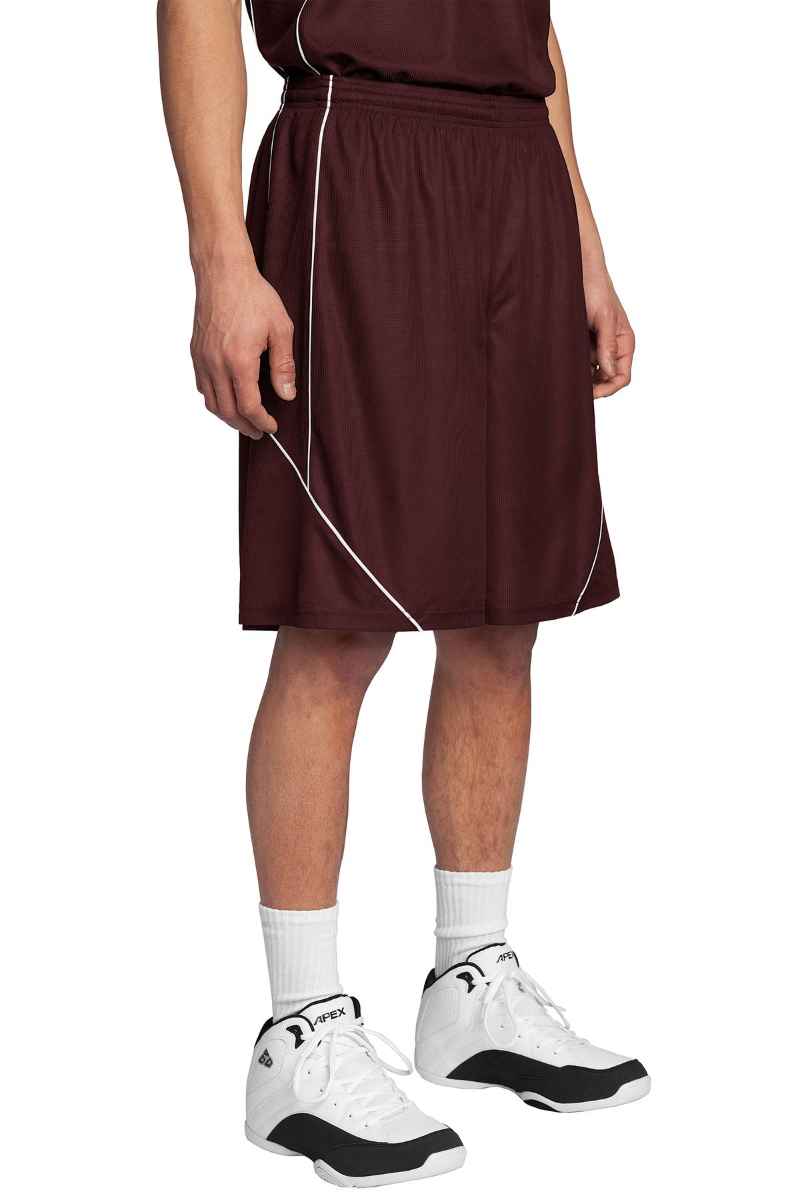 A roomy reversible, moisture-wicking, breathable short that does double duty with spliced piping details. PosiCharge technology offers superior bleed resistance. 3.2-ounce, 100% polyester mesh with PosiCharge technology White mesh reverse with colored piping Double-layer construction with open, individually hemmed layers for easy decoration Elastic waistband with continuous loop drawcord 9-inch inseam