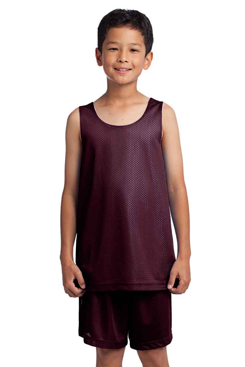 A moisture-wicking, breathable tank with open-hole mesh for a classic look and PosiCharge technology for improved color-fastness. | 3.6-ounce, 100% polyester mesh with PosiCharge technology White mesh reverse Double-layer construction with open, individually hemmed layers for easy decoration