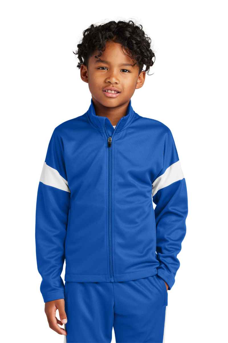 Inspired by classic double-knit sets, this moisture-wicking jacket shows that you are part of the team. 100% recycled polyester double knit Tag-free label Self-fabric locker loop Coil zipper Side slash pockets Colorblock self-fabric detail on sleeves