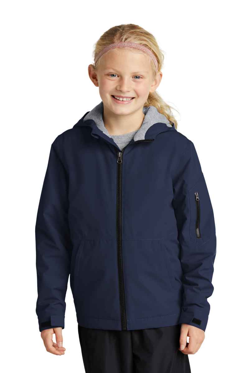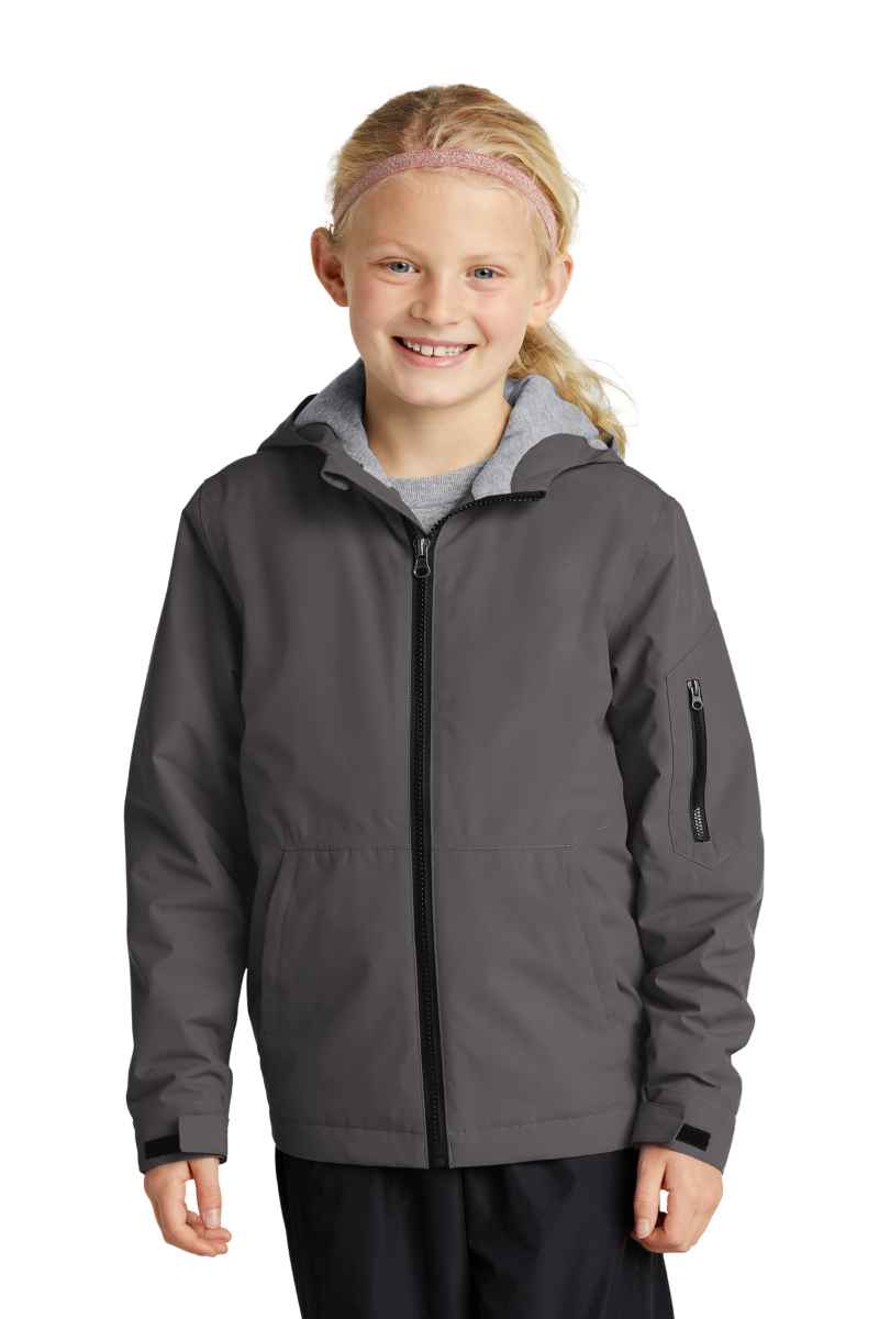This fully seam-sealed, insulated jacket offers outstanding wind-resistant, water-repellent protection to help keep you dry in the stands or on the street. 100% polyester with waterproof face coating Jersey-lined body and hood 2.4-ounce polyfill insulation in body 1.8-ounce polyfill insulation in hood and sleeves Polyester taffeta sleeves for easy on/off 5000MM fabric waterproof rating 3000G/M2 fabric breathability rating Tag-free label Exposed molded zipper No drawcord at hood Left arm zippered pocket Adjustable self-fabric tab cuffs with hook and loop closures Front pouch pocket Decoration access pocket Elastic hem