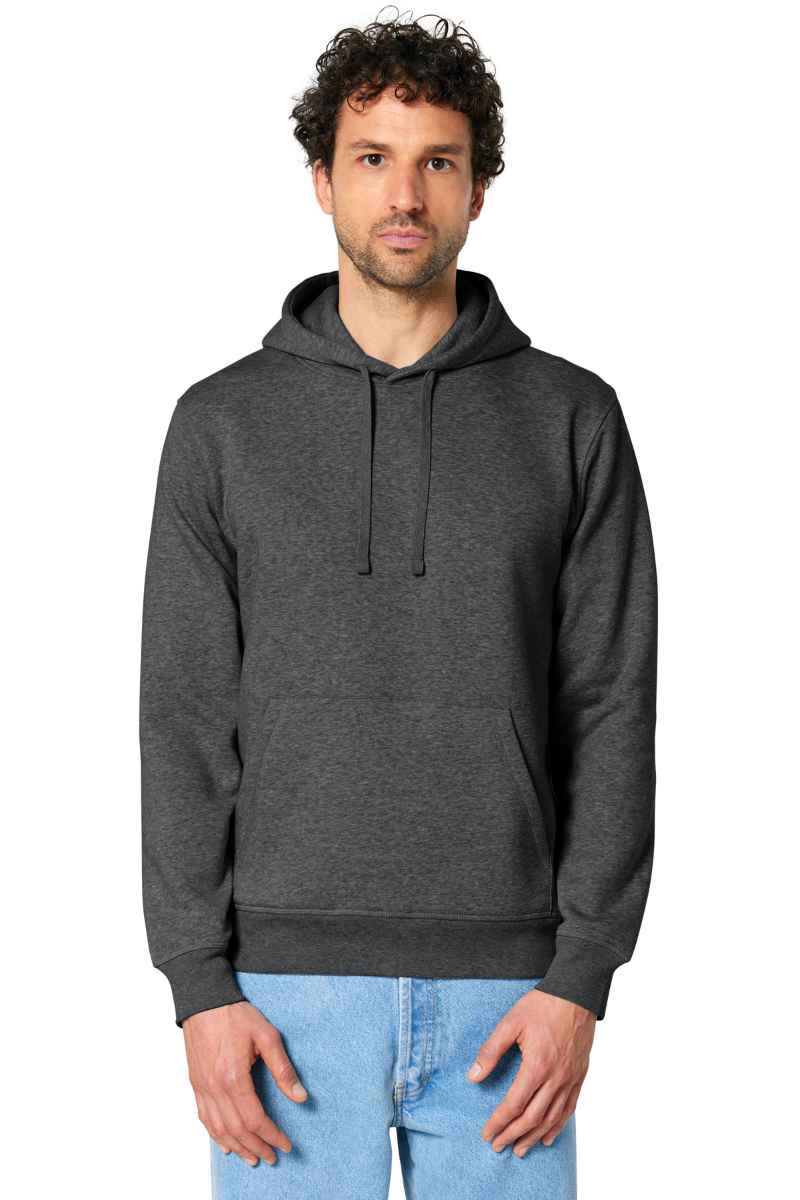 A pullover hoodie that puts your brand in the spotlight. This midweight style is both sustainable and versatile, ideal for year-round layering. 8.3-ounce (280-gram) 80% organic combed ring spun cotton/20% recycled polyester brushed 3-end fleece, cotton face Self-fabric lined hood Dyed-to-match flat drawcords Stitched buttonhole eyelets Herringbone back neck taping Self-fabric half moon at back neck 1x1 rib knit cuffs and hem Flat topstitch on all seams Front pouch pocket with flat topstitch 100% recycled polyester tear-away label Colors up to 5XL: Anthracite, Black, Bottle Green, French Navy, Heather Grey, Red, Vintage White, White Medium fit: Designed for a tidy fit, trim across the shoulders.
