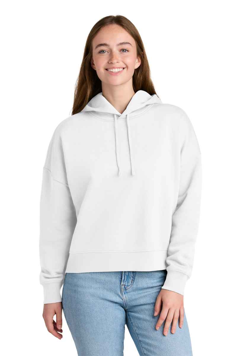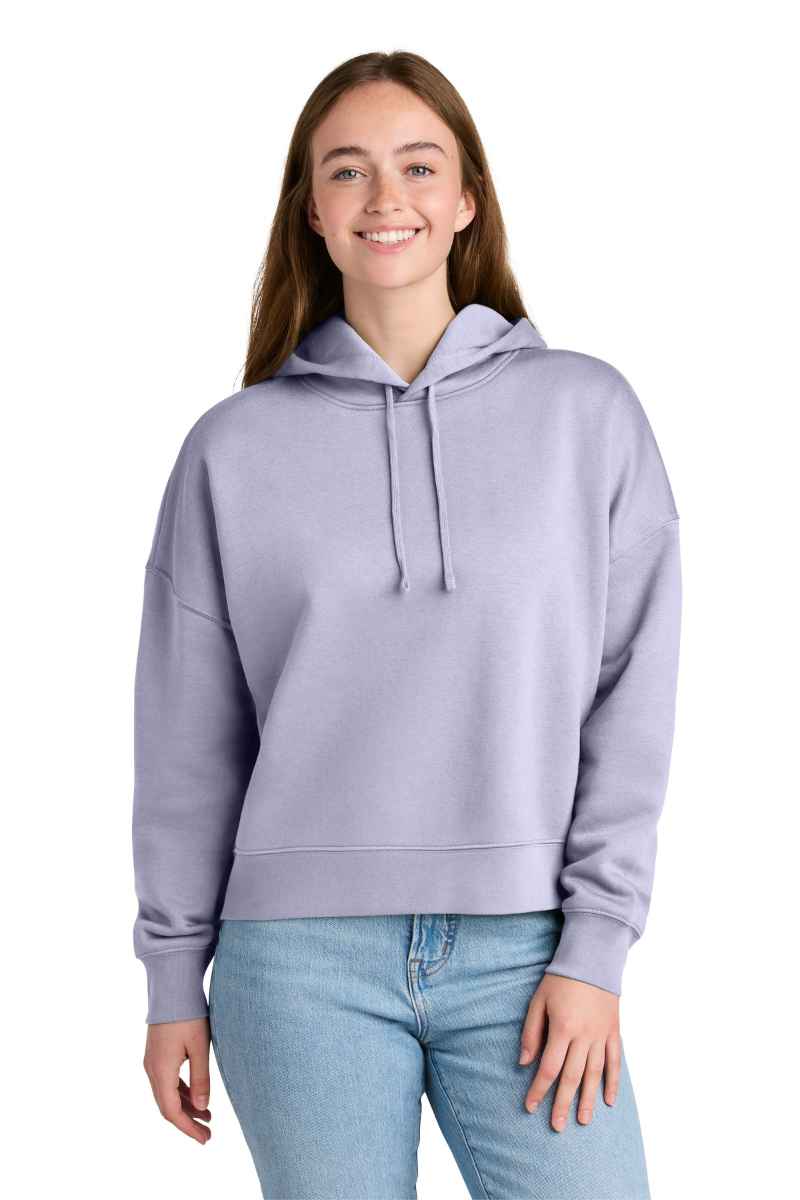 A flattering hoodie with contemporary flair. An adjusted length and refined details add a feminine touch to this sustainably-made sweatshirt. 8.9-ounce (300-gram) 80% organic combed ring spun cotton/20% recycled polyester brushed 3-end fleece, cotton face Self-fabric double-layer hood Dyed-to-match flat drawcords Embroidered eyelets Dropped shoulders 1x1 rib knit cuffs and hem Double-needle topstitch on all seams Medium fit 100% recycled polyester tear-away label Natural Raw: Made with uncleaned carded fibers for a natural look and feel with minimal processing. Some surface pilling may occur, which is normal and won't affect the quality.