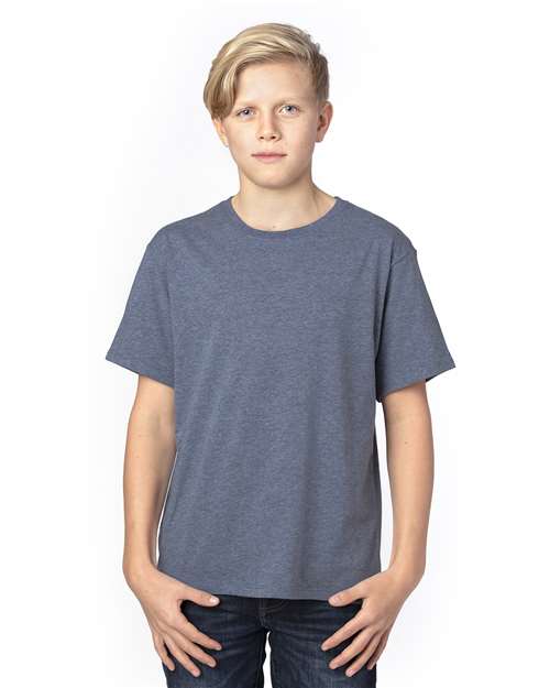 The Ultimate Tee heather colors are dyed using 70% less water, 65% less energy and fewer harmful chemicals