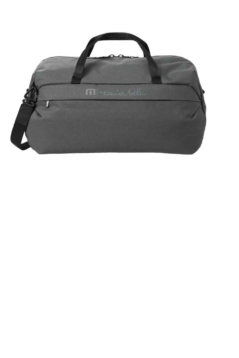 Ready for a trip to the gym or a quick overnight stay, this duffel is just what you need. 100% poly mini ripstop Durable water repellent (DWR) finish Padded handles Detachable, adjustable, padded shoulder strap with printed TravisMathew script logo Side zippered pocket Includes a detachable, logo-ready cinch pack for shoes or damp clothing storage Dimensions: 10.5'h x 19'w x 8.5'd; Approx. 1,695 cubic inches Note: Bags not intended for use by children 12 and under.