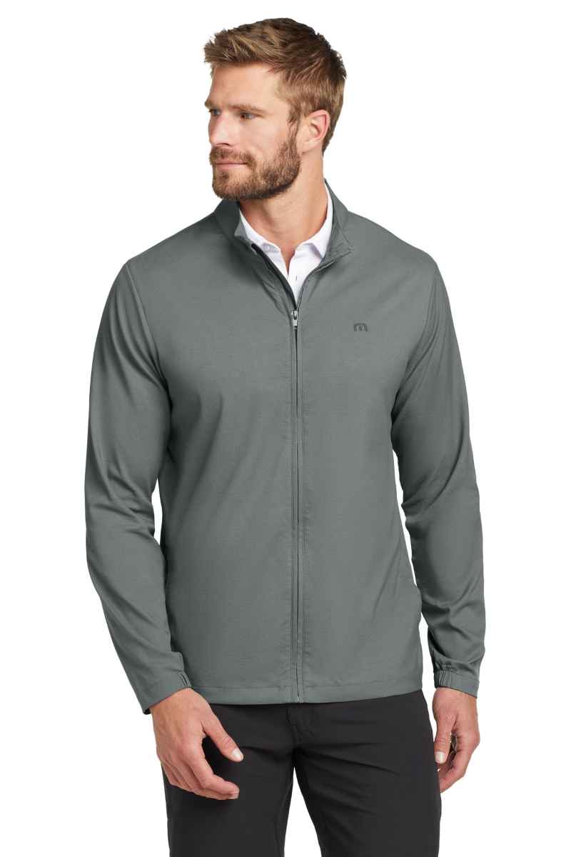 You'll have no trouble finding perfect vacation style in this crisp, classic full-zip. Designed with 4-way stretch for ultimate comfort, this durable jacket is versatile enough for work and play and is easy to throw on without missing a beat. 3-ounce, 72/23/5 nylon/polyester/spandex 4.7-ounce, 88/12 polyester/spandex (Black) Zip-through collar Embroidered TravisMathew logo on left chest Reverse coil center front zipper with kissing welt Open hand pockets Open cuffs